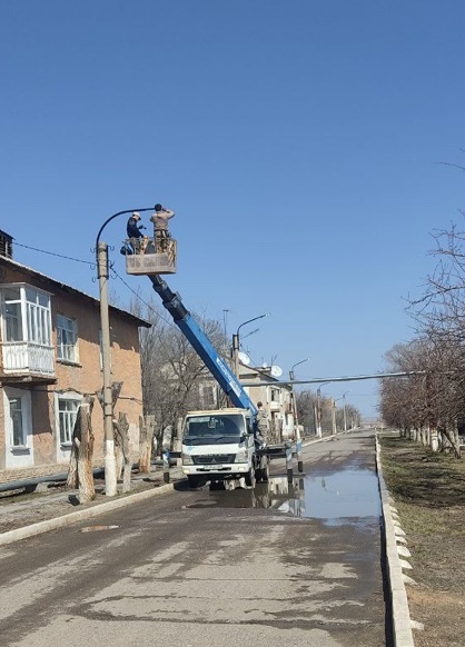 В поселке Южный подрядной организацией ИП Батыр проведены работы по замене ламп уличного освещения на энергосберегающие