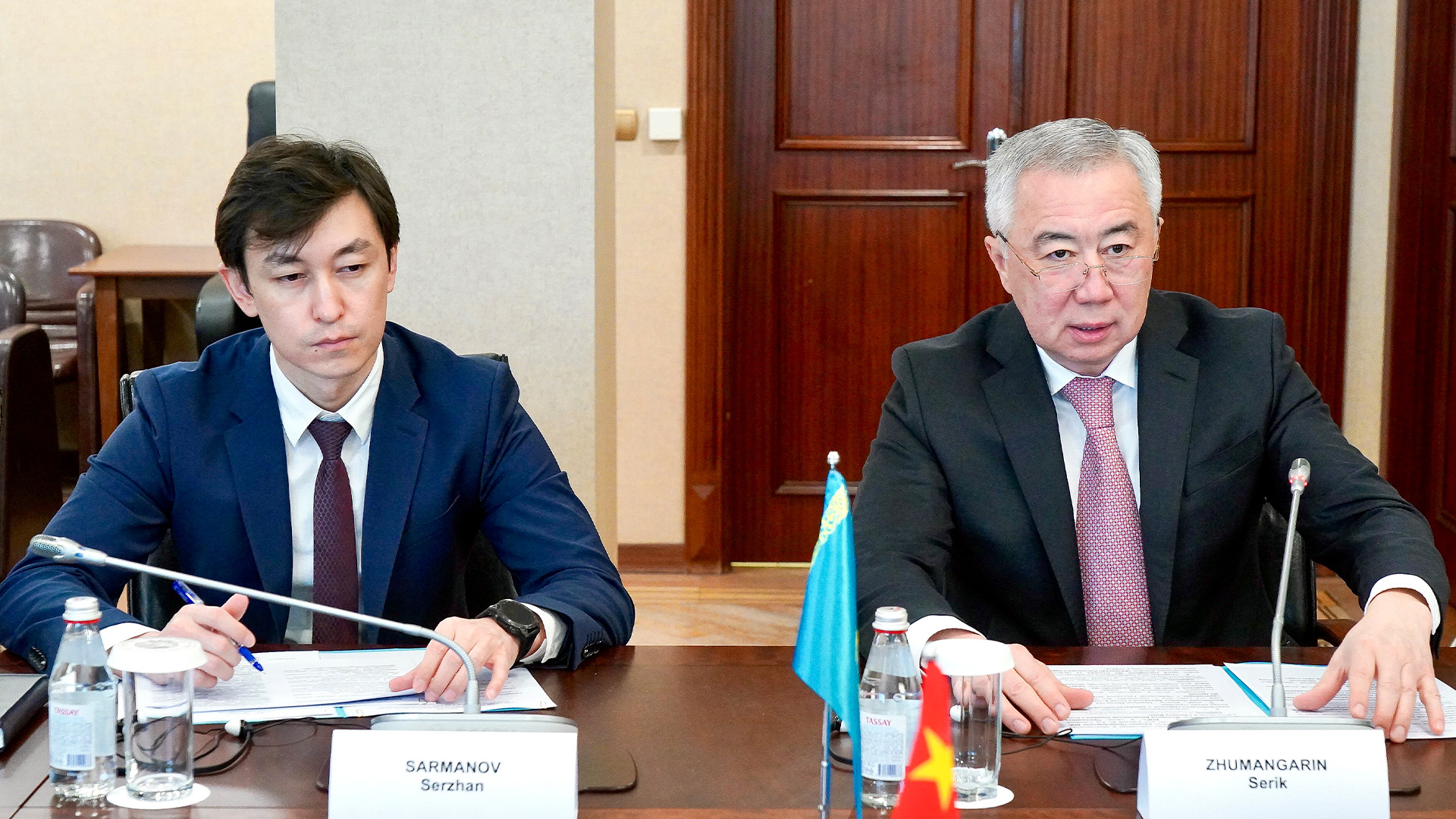 Серик Жумангарин тепло приветствовал дипломата, поздравив с началом работы в Казахстане. Он выразил уверенность, что многолетний опыт Посла, в том числе в Министерстве коммерции КНР, послужит укреплению стратегического партнерства между странами.
