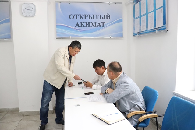 Аким Аль-Фарабийского района Р.Мыңбаев провёл очередной личный приём граждан. В ходе приёма с различными обращениями обратилось около десяти жителей района.