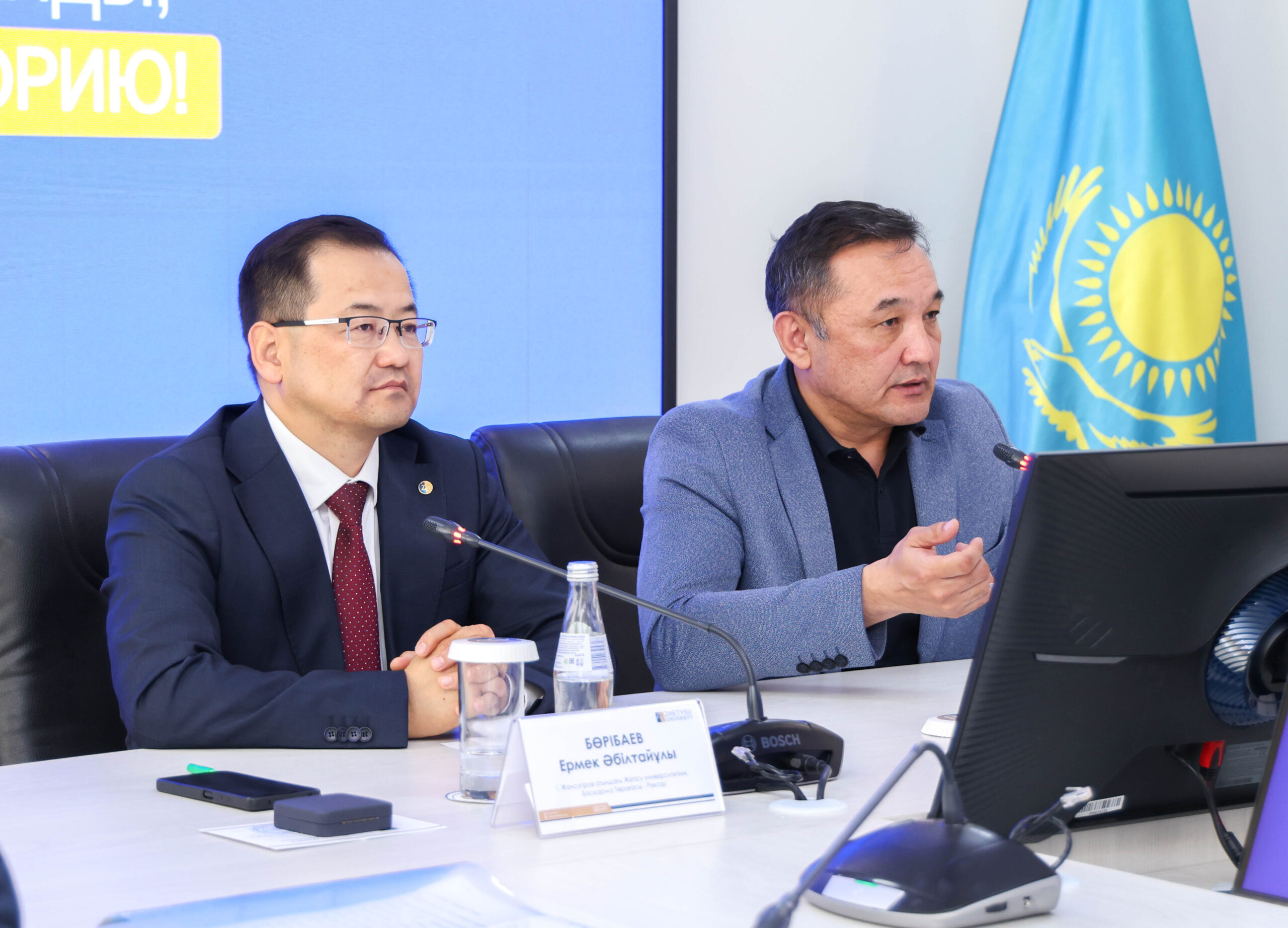 Встречу провел Председатель правления – ректор Ермек Бурибаев. В ходе встречи Айдын Аимбетов рассказал обучающимся о деятельности космического ракетного комплекса «Байтерек».