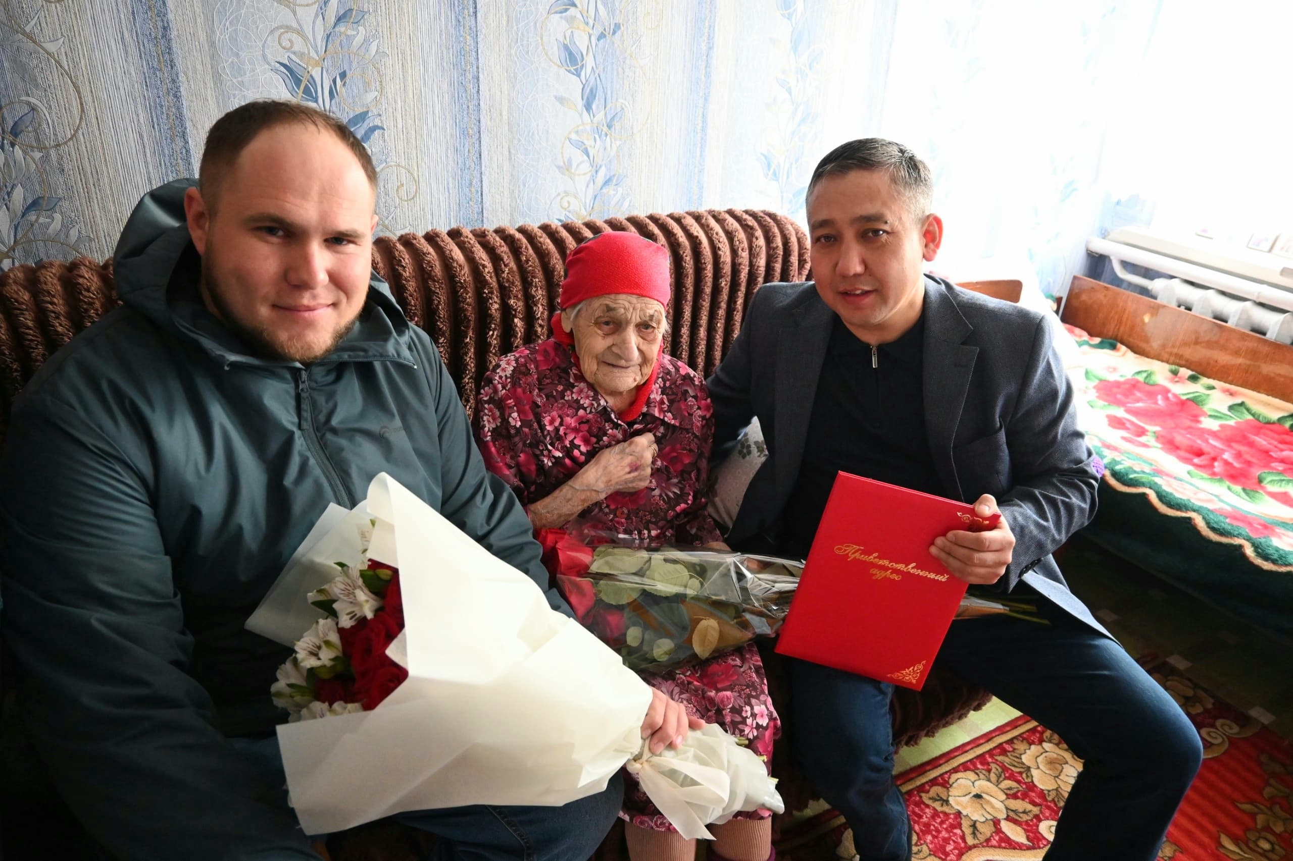 Аким Сандыктауского района Серик Кудабай поздравил с 100-летним юбилеем труженицу тыла, жительницу села Максимовка — Анастасию Ивановну Попрыгину.