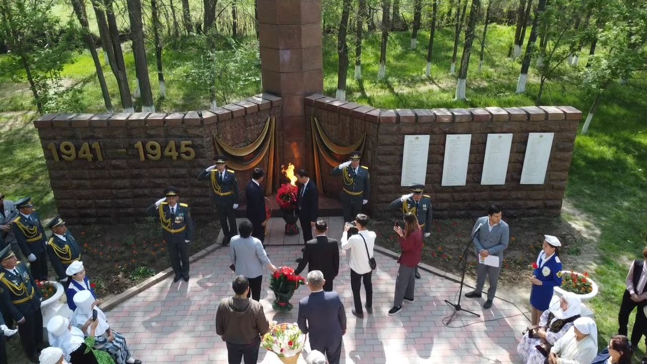 Член областного совета ветеранов Мухаметильда Байшораев в своей речи подчеркнул, что социальный автокараван прославляет бессмертный подвиг ветеранов, которые разбили кровавого врага и защитили Родину. Минутой молчания почтили память фронтовиков и возложили венки к памятнику.