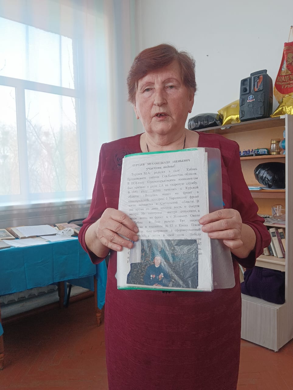 Советом ветеранов Первомайского сельского округа были приглашены учащиеся КГУ “Буденновская общеобразовательная школа” Урок мужества, посвященный 80-летию в Великой Отечественной войне. Цель: сформировать представление учащихся о Великой Отечественной войне и её героях. Пятунина Н.Н. показала ребятам музей,где были сохранены одежда и предметы солдат ВОВ, дети возложили яркие цветы и почтили минутой молчания солдат погибших в Великой Отечественной войне.Урок продолжался беседой о ветеранах нашего края.Наталья Николаевна прочла стихотворения собственного сочинения посвященные ВОВ. В завершении урока учащиеся попили чай со вкусным тортом и сладостями.