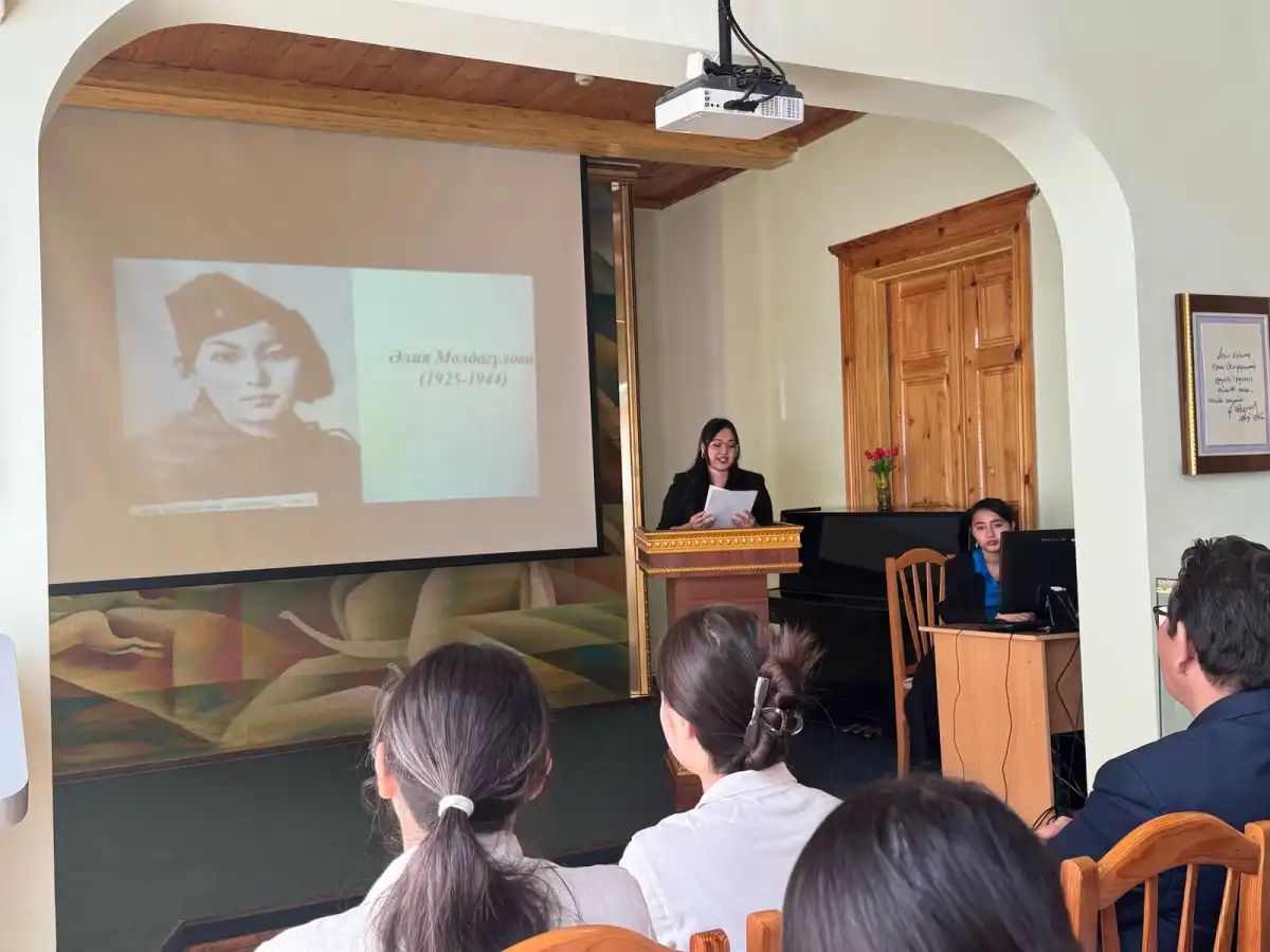«Целью нашего мероприятия, проводимого в рамках годового плана музея в честь 80-летия Победы в Великой Отечественной войне, является патриотическое воспитание подрастающего поколения, пропаганда жизненного пути и подвига героини, отдавшей жизнь за Родину, повышение любви к стране, земле. На данной лекции были продемонстрированы слайды с фотографиями и сведениями с фронта об Алие Молдагуловой. Рассказывается о короткой жизни героини, которая была на фронте всего год, в 1943-1944 годах. Приводятся данные о ее подвиге, о том, сколько врагов пало от ее рук. В целом, была озвучена важная роль снайперов в Отечественной войне. Также детям предоставлена обширная информация о месте рождения и учебы героини», – сообщила руководитель отдела историко-культурного наследия и экскурсионно-выставочной работы музея Карлыгаш Жумаханова.