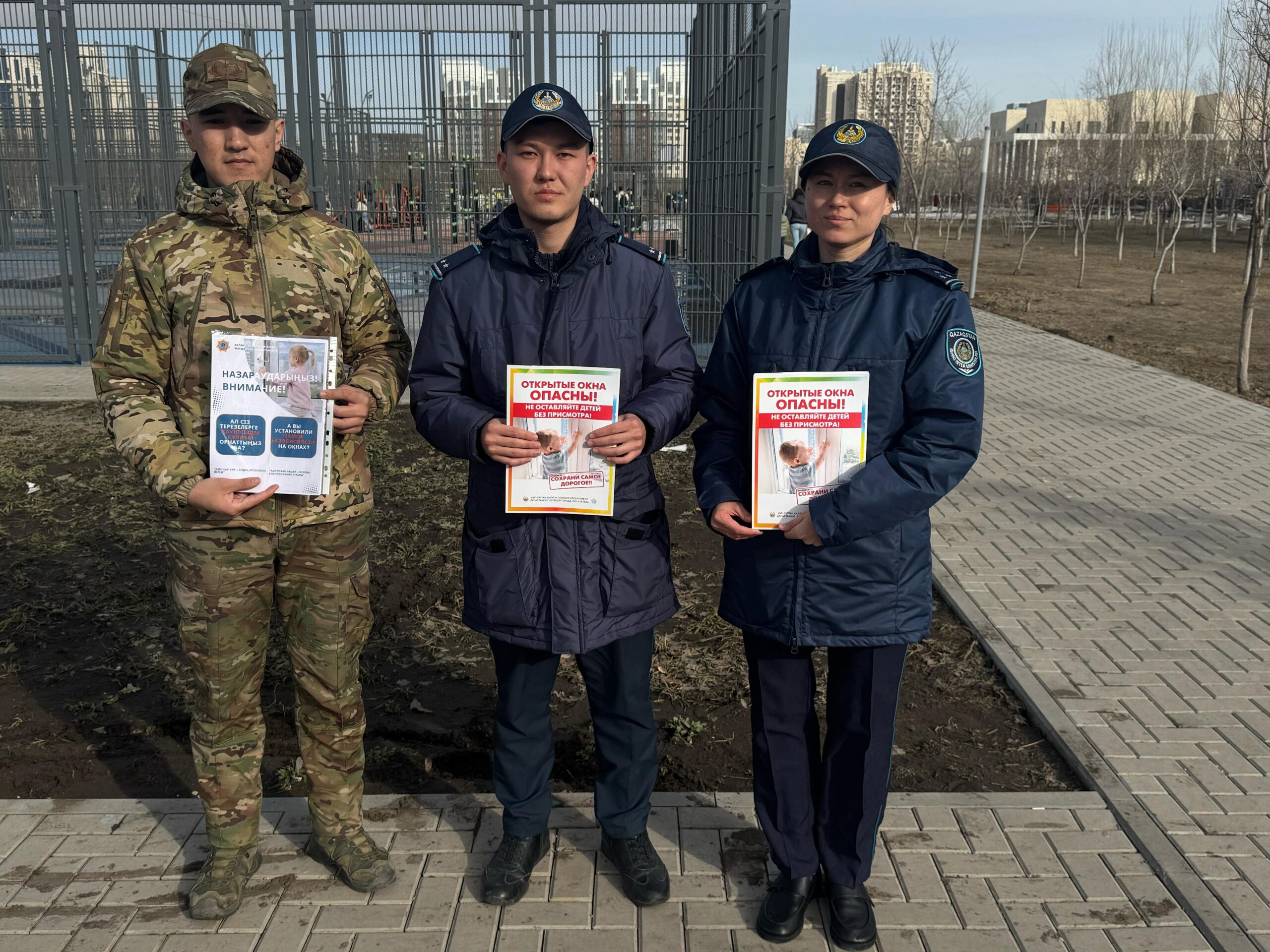 В рамках профилактики в жилых комплексах столицы проходят мероприятия по обходу квартир. Представители ДЧС, ювенальной полиции и акимата проводят беседы с жителями, напоминают о важности установки ограничений на окна и недопущения оставления детей без присмотра.