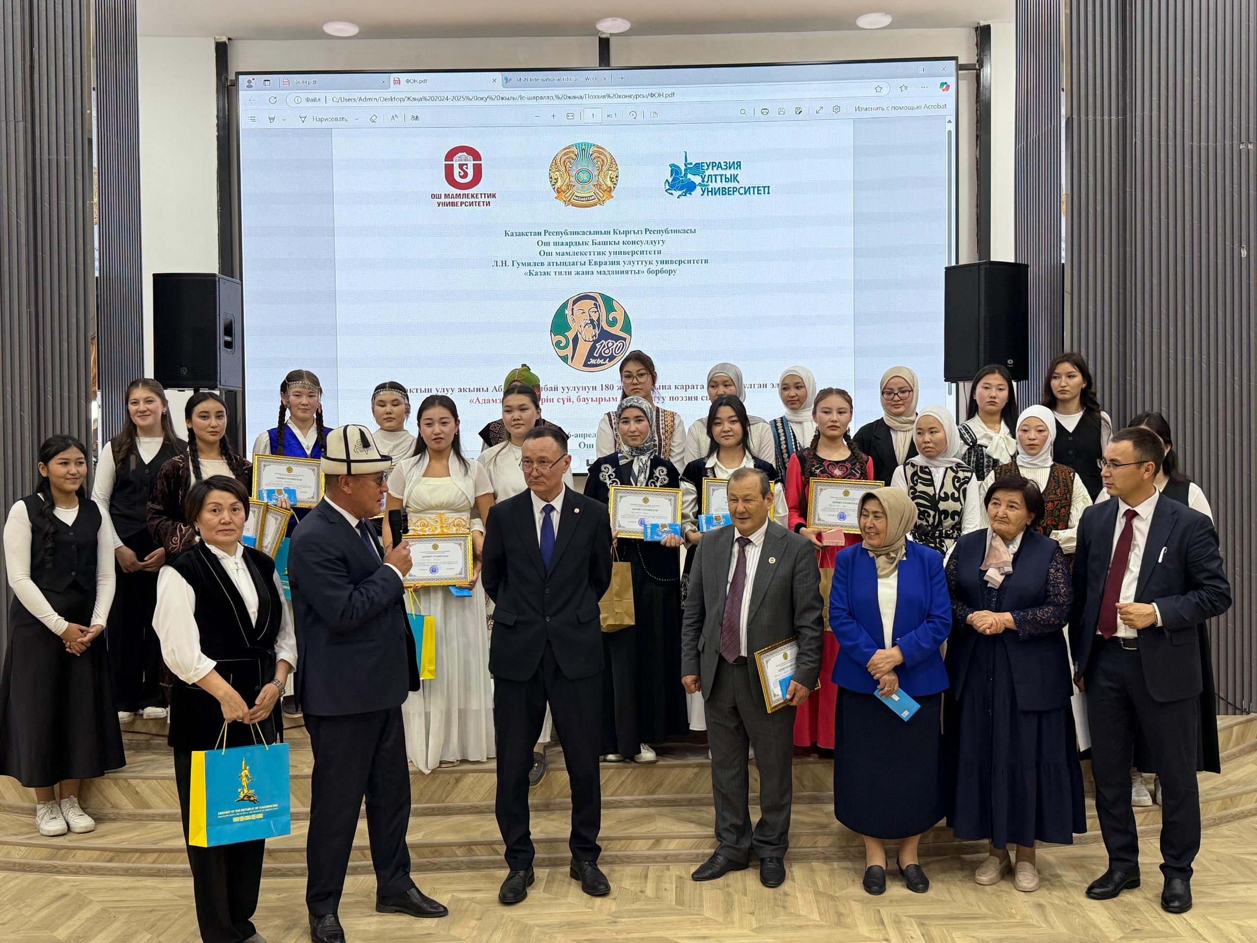 16 апеля 2025 года в г. Ош Генеральным консульством Республики Казахстан в г. Ош при содействии «Центра казахского языка и культуры» при Ошском государственном университете был организован международный конкурс поэзии «Адамзаттың бәрін сүй, бауырым деп», приуроченный 180-летию великого казахского поэта и мыслителя Абая Кунанбаева.