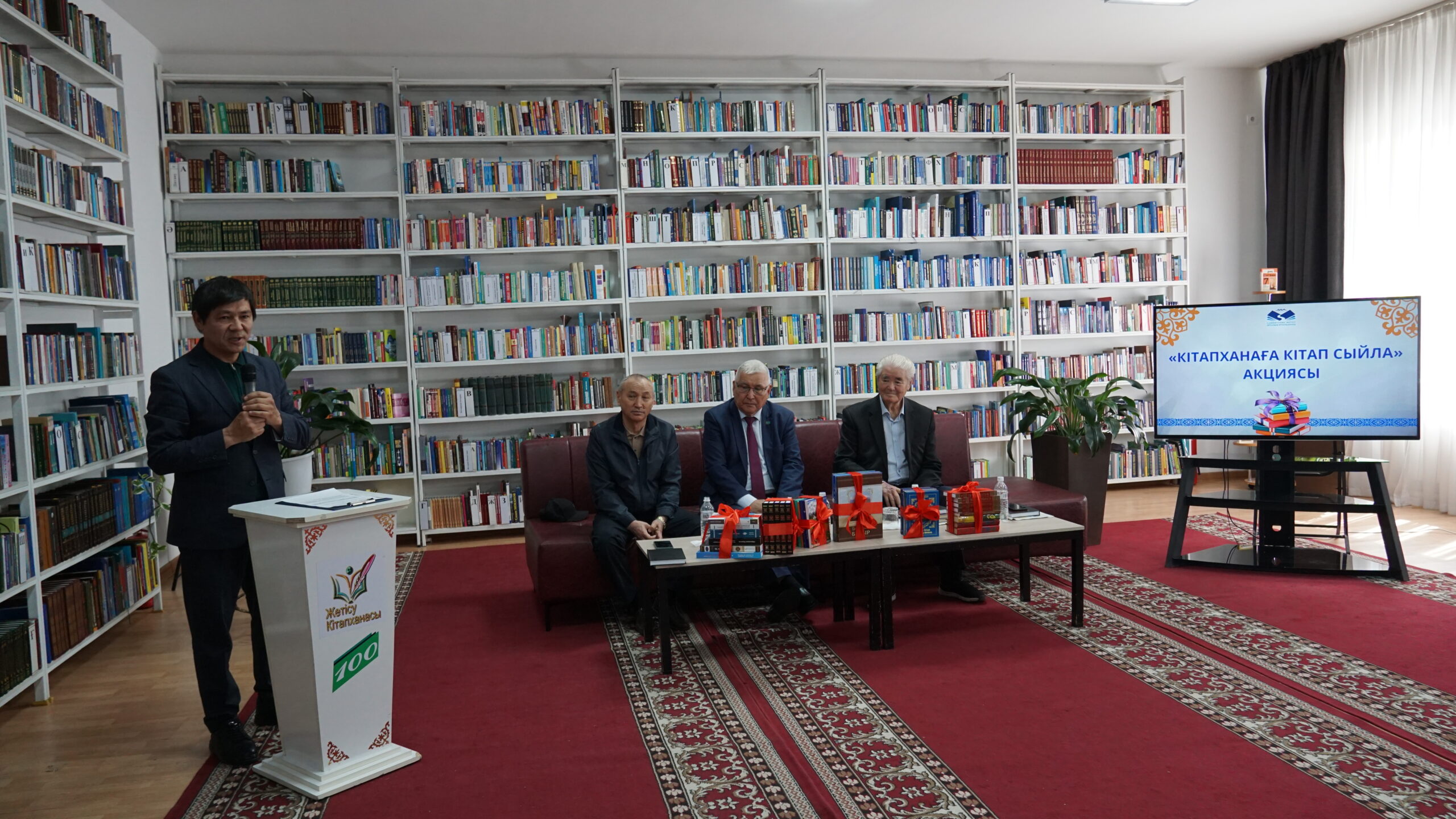 Центральной библиотекой имени Сакена Сейфуллина области Жетісу с участием доктора филологических наук, профессора, члена Союза писателей Казахстана, почетного гражданина Панфиловского района Булдыбая Анарбая Сагиевича в рамках благотворительной инициативы «Подари книгу библиотеке» было проведено торжественное мероприятие по дарению книг в фонд библиотеки.