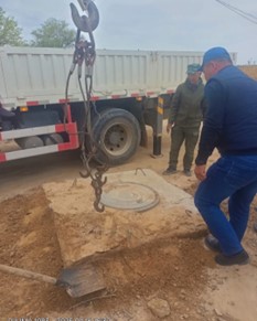 ⚜️Установлено, что транспортным средством повреждены крышка и бетонное покрытие питьевого колодца, расположенного возле дома №25 по улице М. Ускинбаева в селе Жетыбай. В связи с этим сотрудники учреждения установили соответствующую полимерную крышку и новую бетонную крышку колодца.