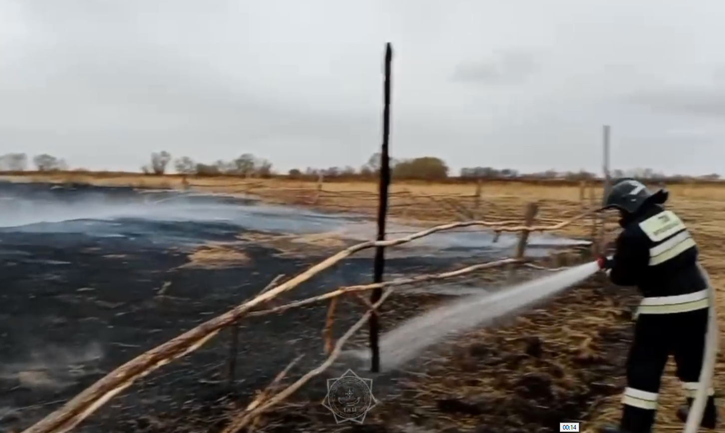 Пожарными огонь ликвидирован. Не допущено распространение огня на постройки.