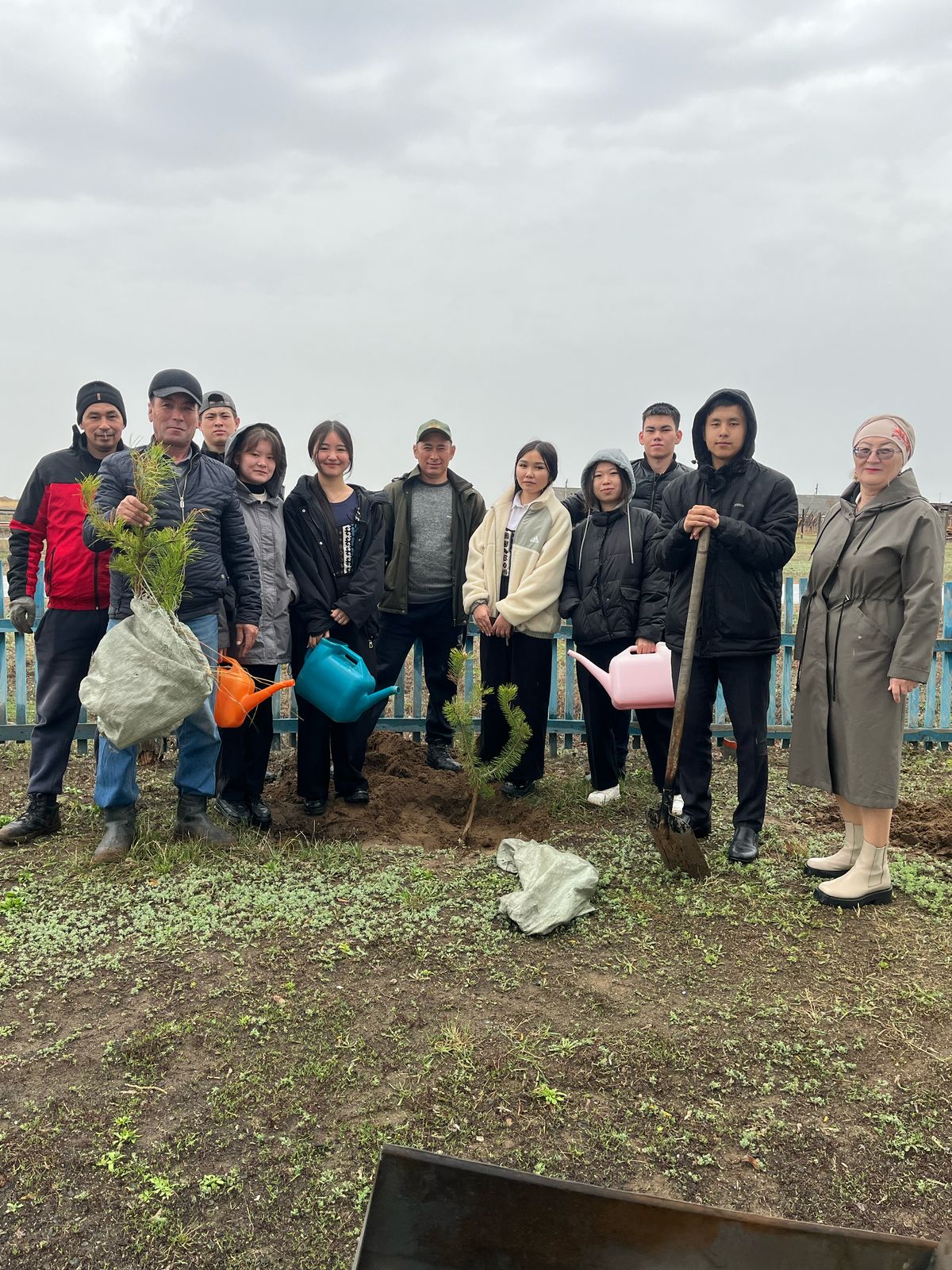 В селе Новоселовка на территории прилегающей к общеобразовательной школы состоялась посадка сосен.