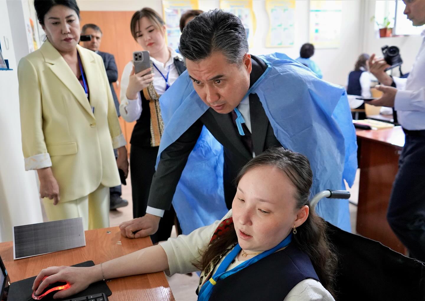 В ходе визита Вице – министр ознакомился с деятельностью КГУ «специальный профессиональный колледж», расположенного в городе Кентау управления координации занятости и социальных программ Туркестанской области, единственного в стране учреждения образования для граждан с инвалидностью.