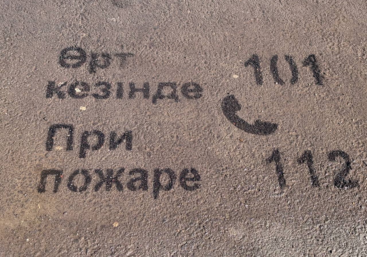 Такой метод используется впервые в Казахстане и призван напомнить горожанам о простых, но важных правилах безопасности. Надписи наносятся в самых оживлённых местах столицы.