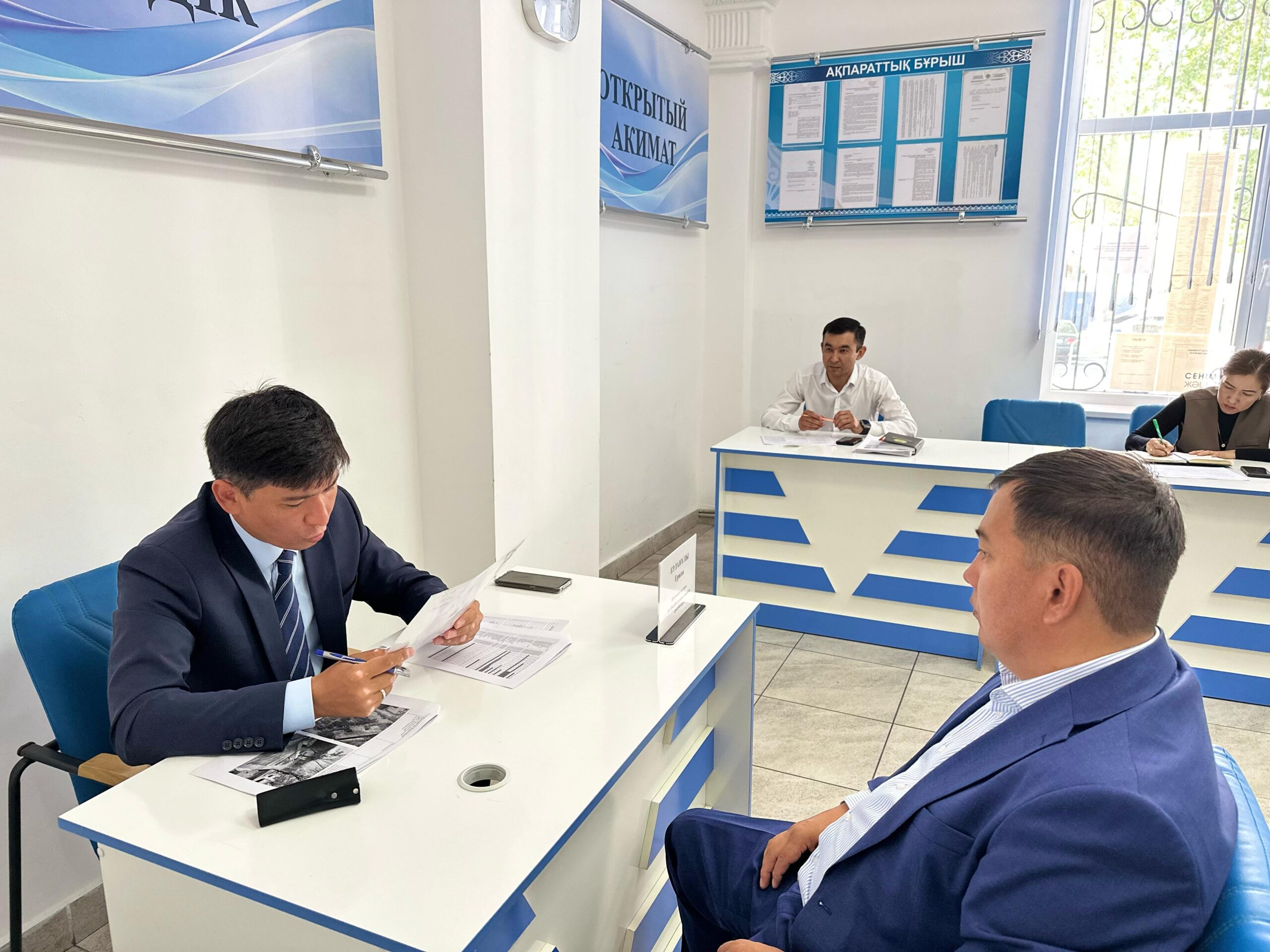 Для записи на приём к акиму района и его заместителям необходимо лично обратиться в здание аппарата акима района Аль-Фараби с удостоверением личности и пройти предварительную регистрацию.