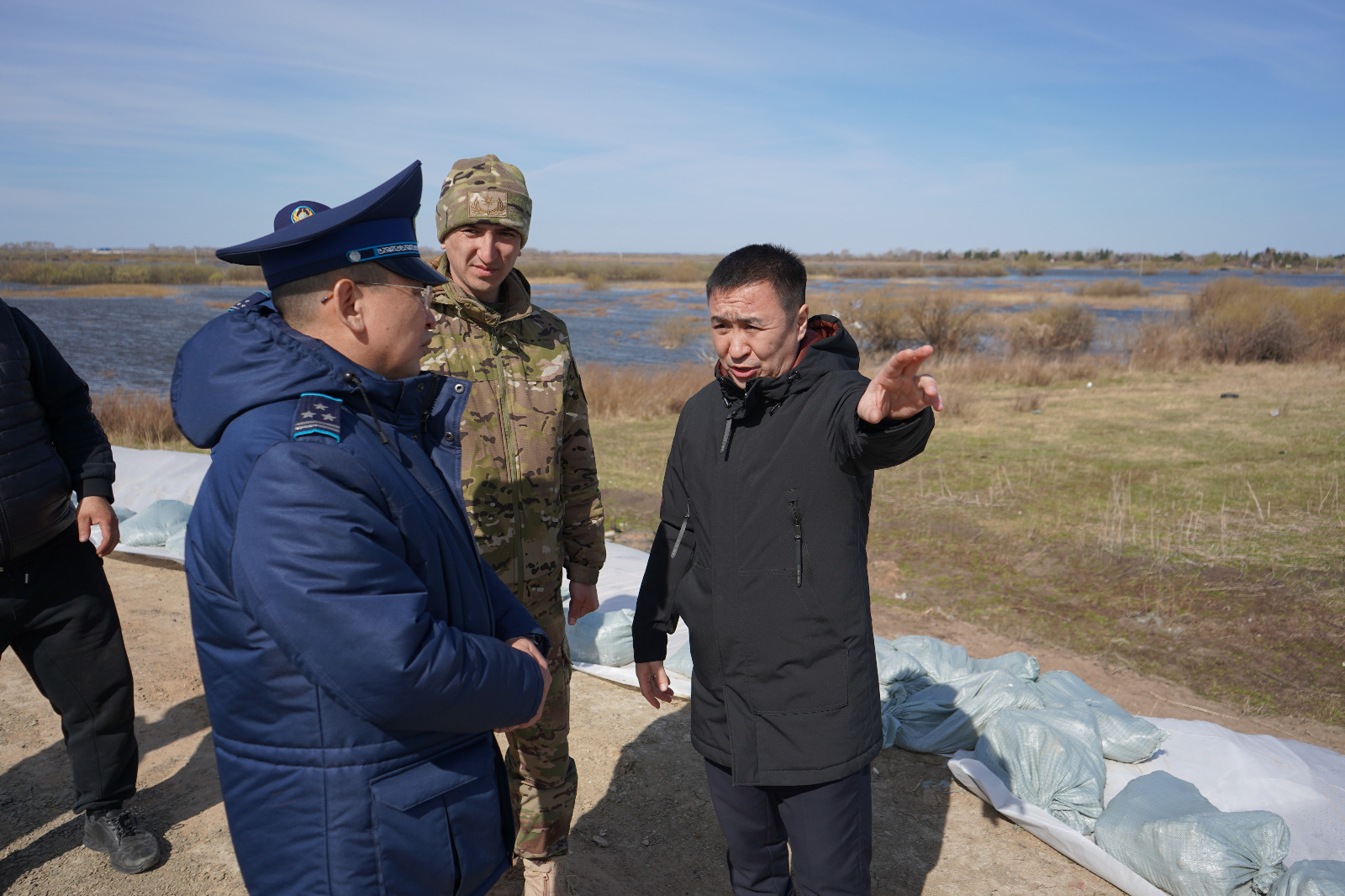 Заместитель начальника департамента полиции Северо-Казахстанской области Курмангали Исмагулов совершил объезд постов полиции, которые выставлены возле дамбы у пригородного села Тепличного, села Прибрежного Кызылжарского района и других опасных участках в зоне паводка.