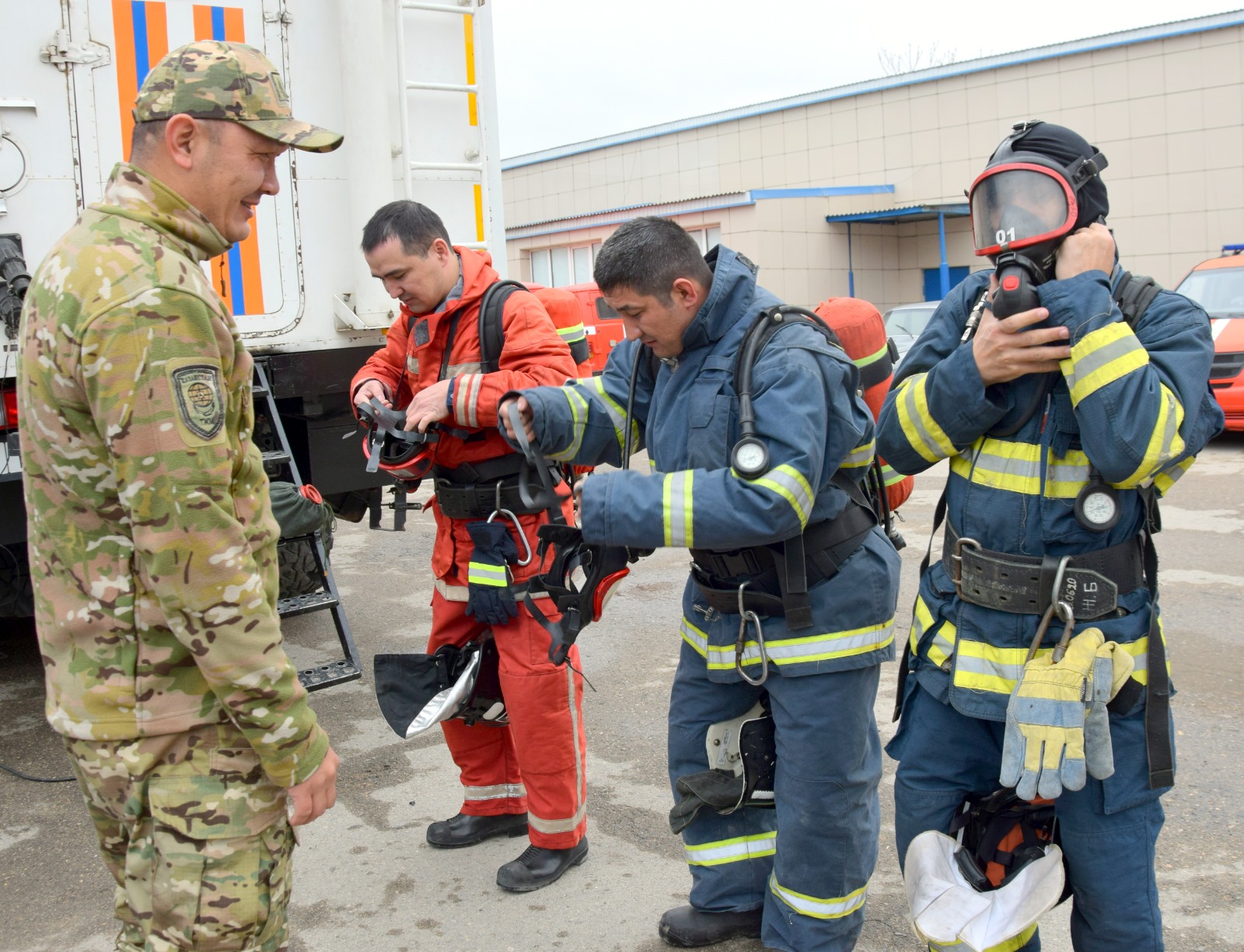 На базе 1-ой специализированной пожарной части состоялись занятия с офицерским составом ДЧС Мангистауской области с применением средств индивидуальной защиты органов дыхания и зрения (СИЗОД), защищающие их от воздействия опасных факторов пожара.