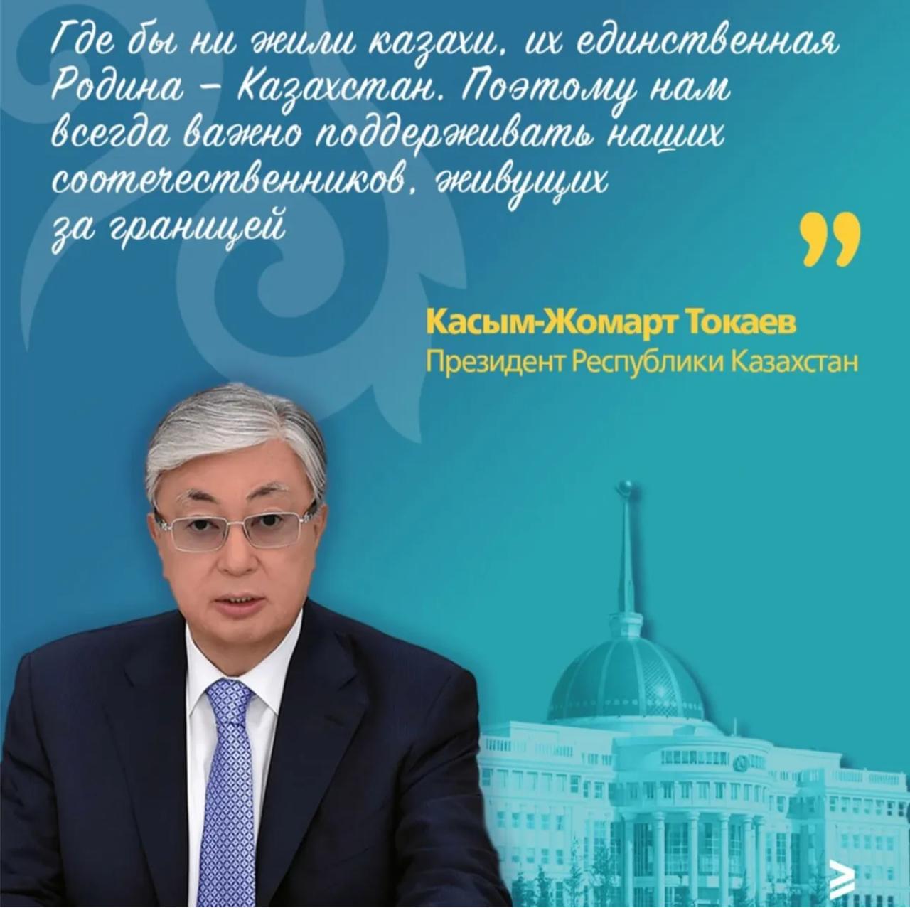 «Где бы ни жили казахи, их единственная Родина – Казахстан. Поэтому нам всегда важно поддерживать наших соотечественников, живущих за границей», – Президент Республики Казахстан Касым-Жомарт Токаев.