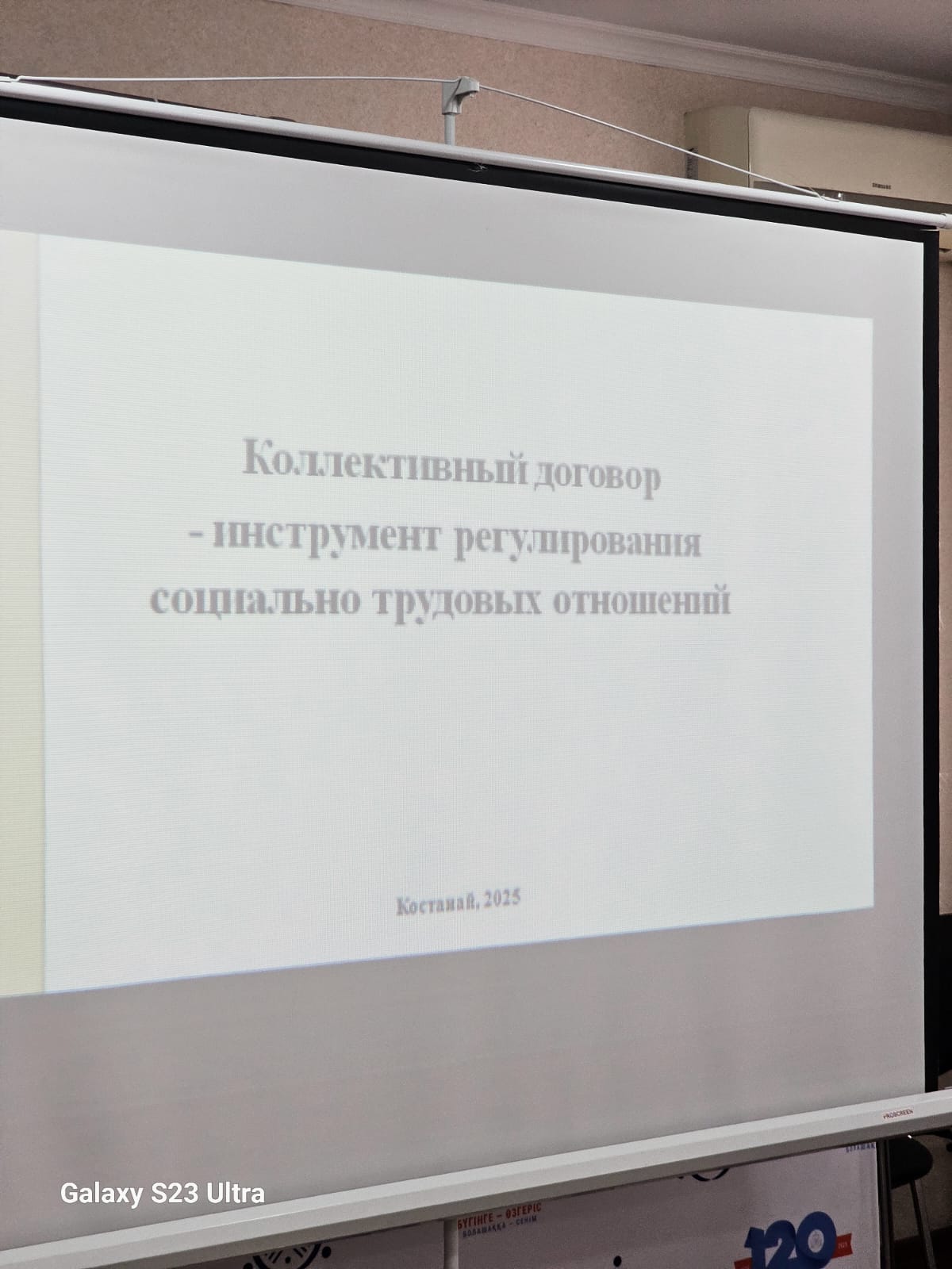 Государственный инспектор труд А.Кушкимбаев принял участие на семинаре в Профсоюзном центре Костанайской области на тему “Коллективный договор -инструмент коллективно договорного регулирования социально трудовых отношений.