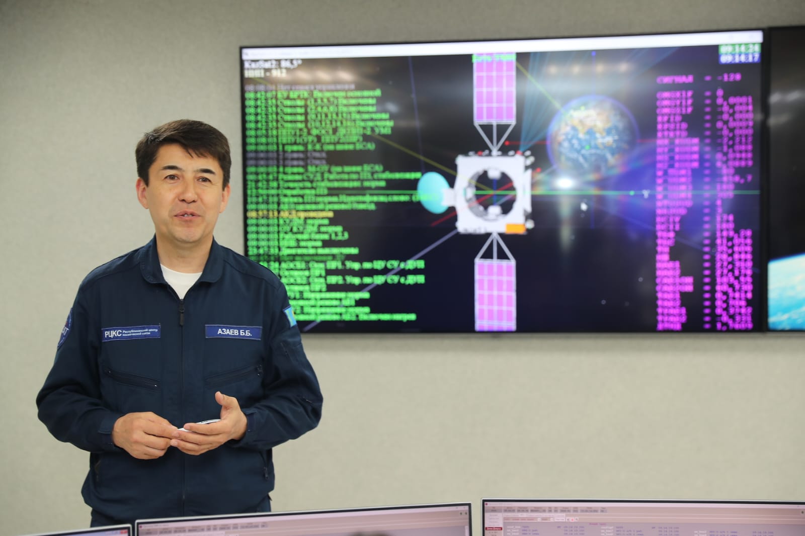Специалисты ЦКС «Акколь» рассказали и показали гостям, как ведется управление спутниками связи «Kazsat», которые находятся на геостационарной орбите на высоте в 36 тысяч километров.