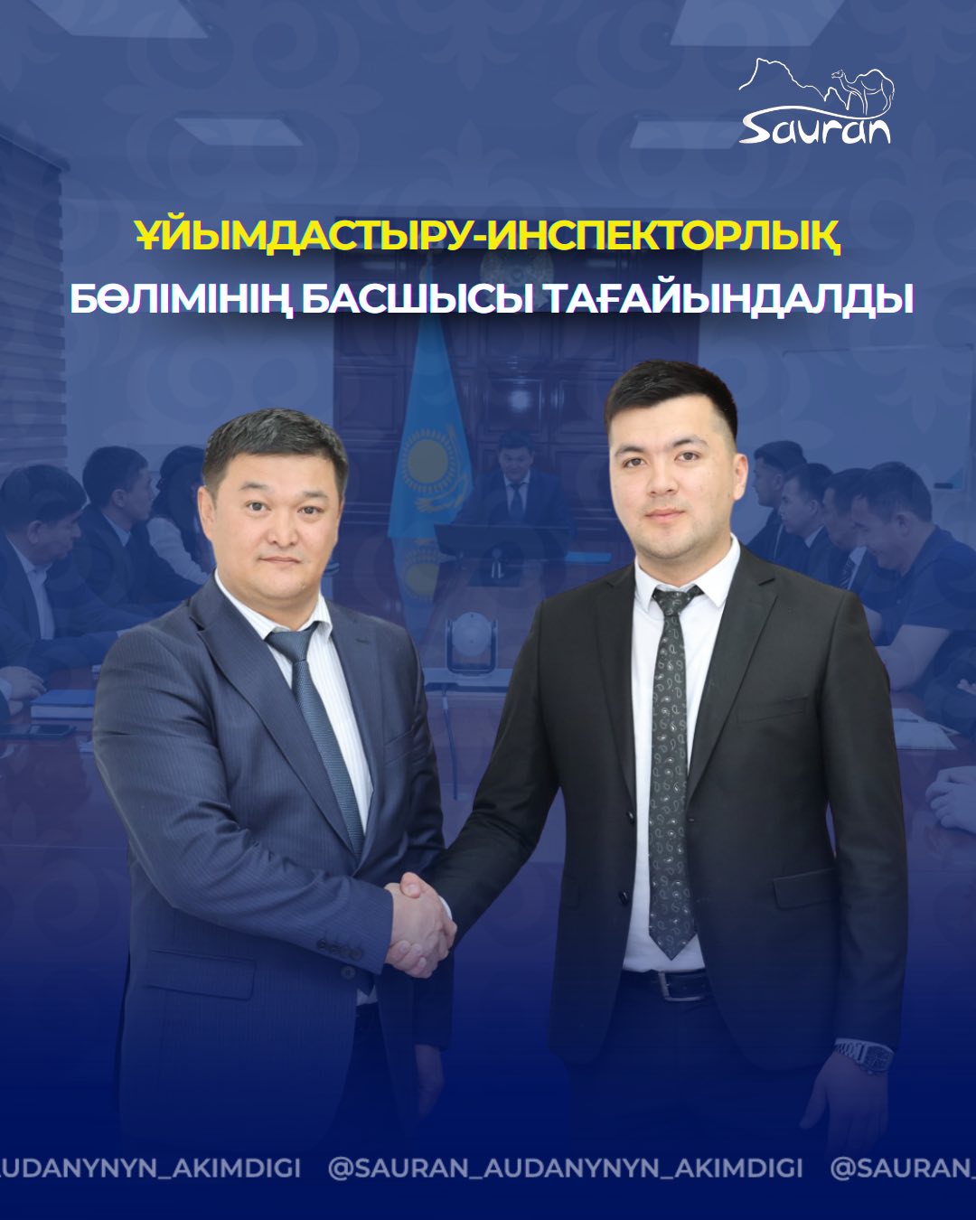 Распоряжением акима Сауранского района Насыр Ербол Нурланулы назначен заведующим организационно-инспекционным отделом аппарата акима.