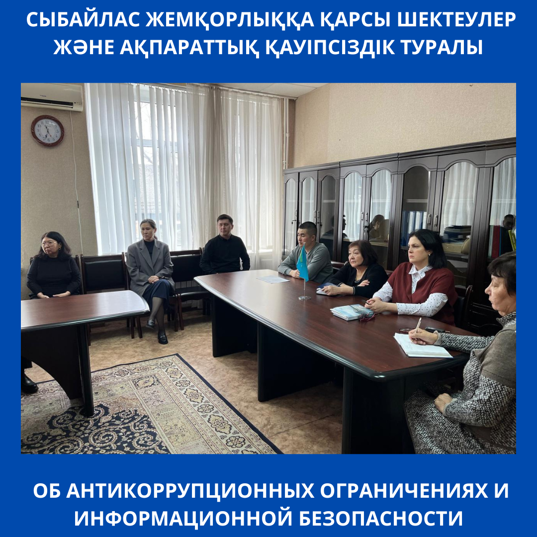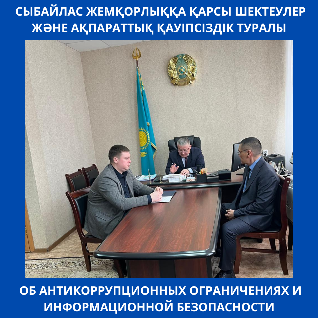 Кроме того, в мероприятии принял участие сотрудник Антикоррупционной службы по Костанайской области Е.Бедыч, который ознакомил участников по вопросам предупреждения и пресечения фактов коррупции на тему: «Формирование антикоррупционной культуры и практическая государственная антикоррупционная политика».