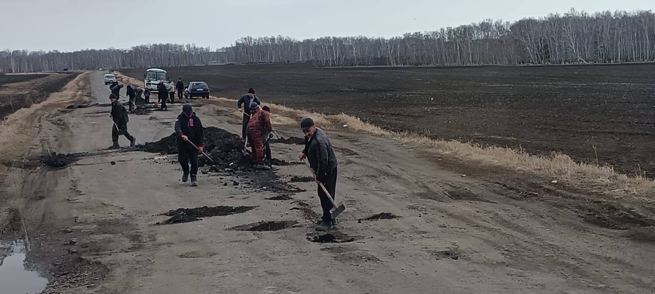 В минувшее воскресенье 6 апреля жители с.Красноярка совместными усилиями с ФХ “Золотые поля” провели работу по подсыпке ям подъездного пути к с.Красноярка инертным материалом