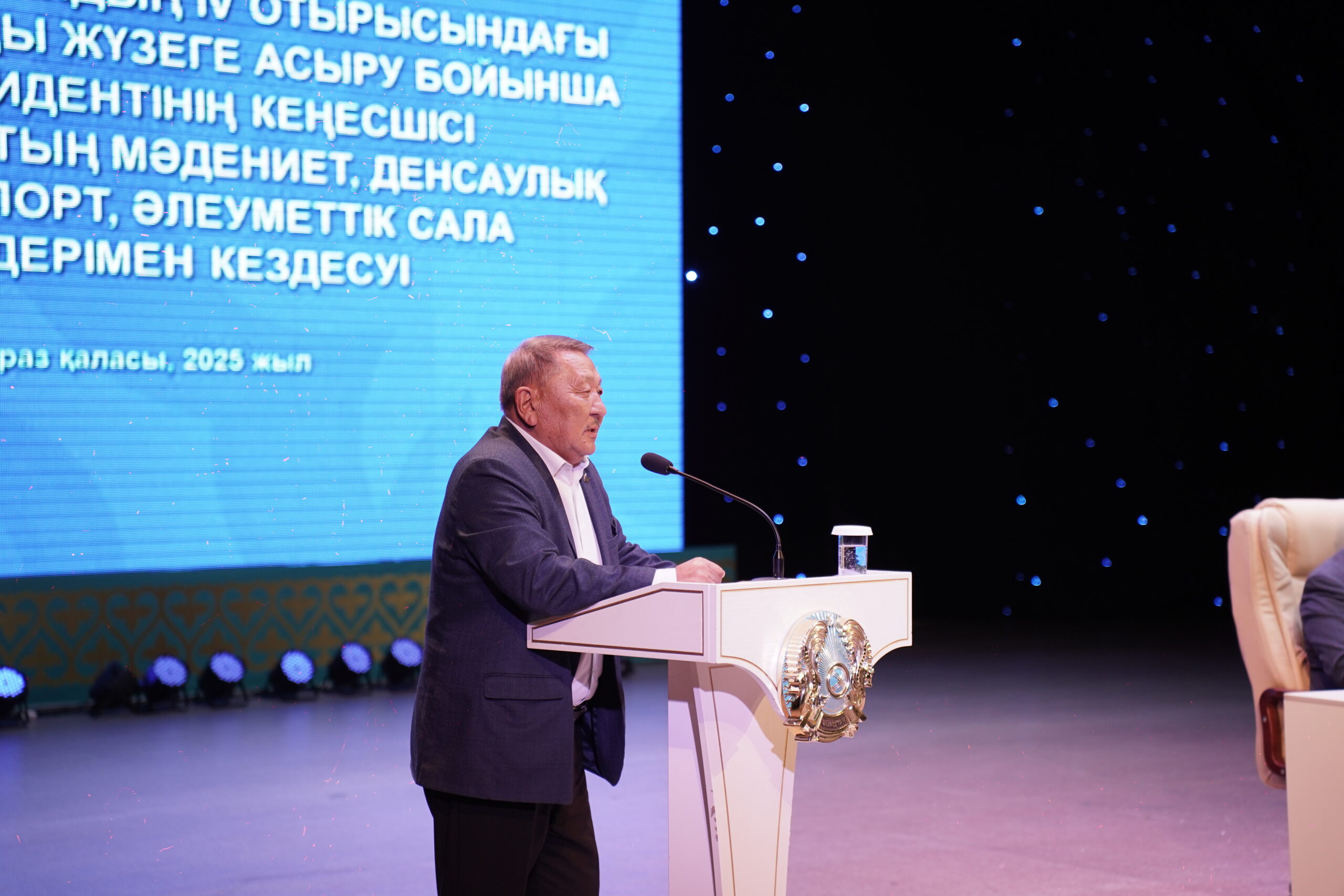 В рамках реализации задач, поставленных на IV заседании Национального курултая, советник Президента Республики Казахстан Мәлик Отарбаев провёл встречу с представителями сферы культуры, здравоохранения, спорта и социальной защиты Жамбылской области. В ходе мероприятия были обсуждены актуальные вопросы, касающиеся духовного и культурного развития региона, а также выслушаны предложения и мнения специалистов отрасли. Модератором встречи выступил аким Жамбылской области Ербол Карашокеев.