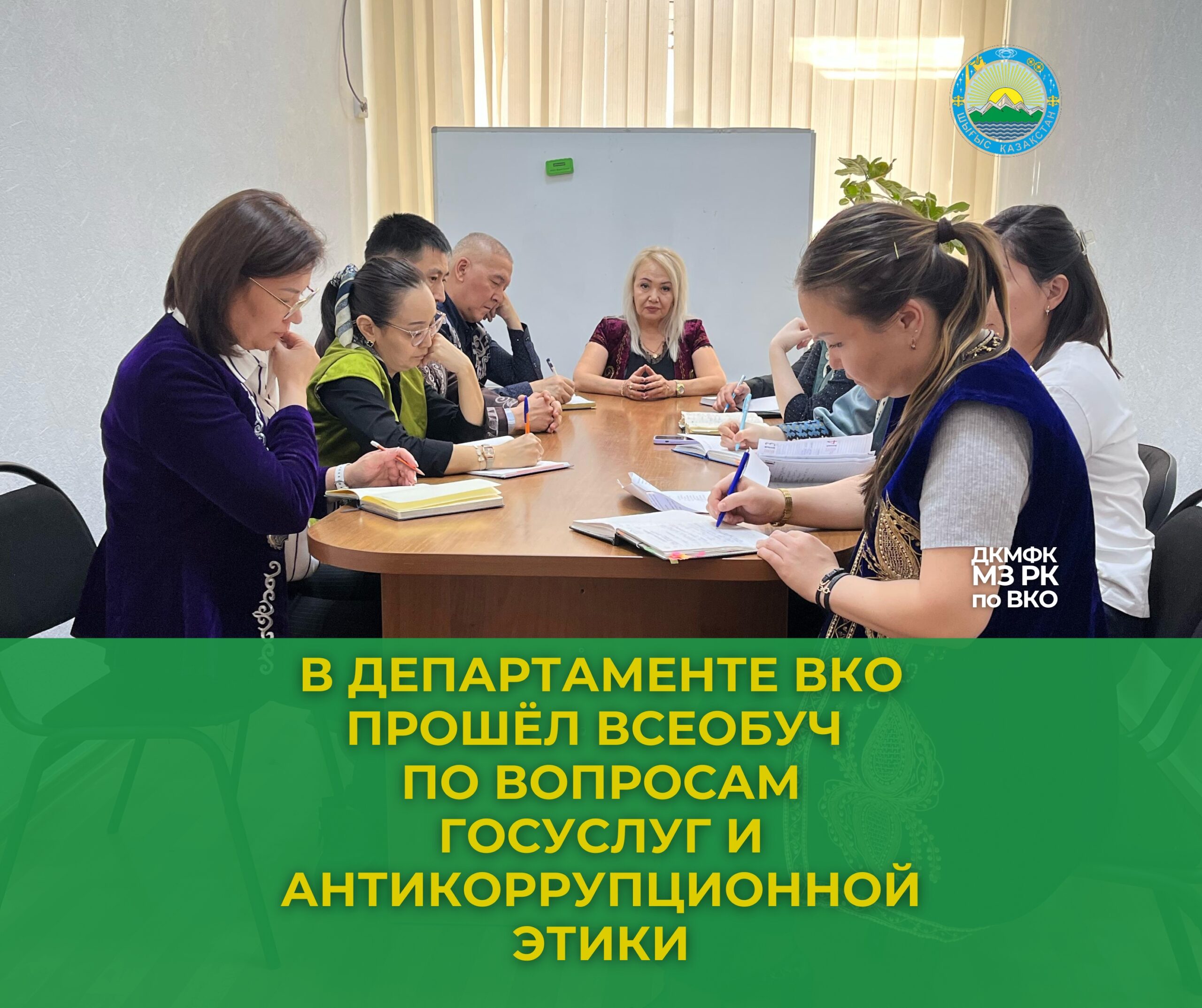 В Департаменте Комитета медицинского и фармацевтического контроля МЗ РК по Восточно-Казахстанской области прошёл всеобуч для сотрудников. Руководитель отдела фармацевтического инспектората и государственных услуг Жансая Кайратова выступила с докладом о предоставлении государственных услуг. Заместитель руководителя, уполномоченный по этике Думан Кальжиров осветил вопросы антикоррупционной политики. В завершение встречи руководитель Департамента Алмагуль Кусатаева напомнила сотрудникам о необходимости строгого соблюдения норм антикоррупционного законодательства.