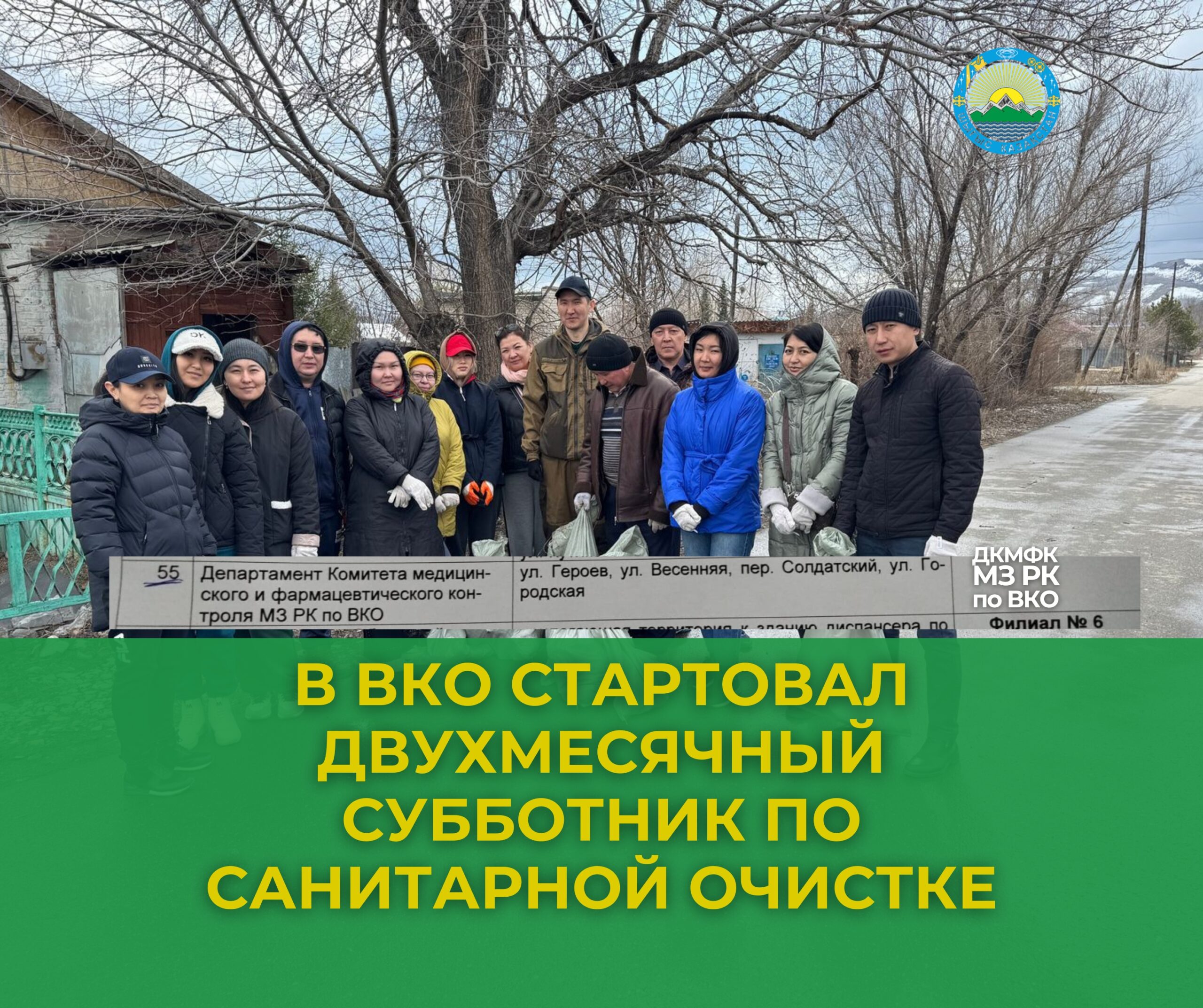Восточно-Казахстанский департамент Комитета медицинского и фармацевтического контроля МЗ РК демонстрирует пример о заботе Родины. Сегодня в ВКО стартовал двухмесячный субботник по санитарной очистке, благоустройству и озеленению территорий. Сотрудники ДКМФК МЗ РК очистили улицы Героев, Весенняя, Городская и пер. Солдатский. Традиционная акция продлится до 31 мая.