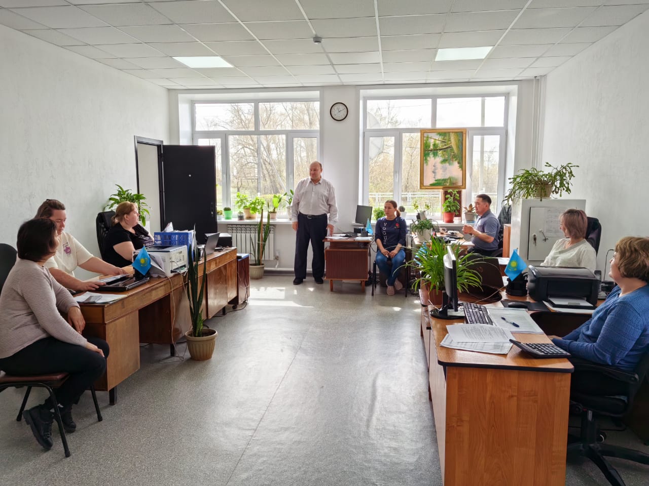 Титов Павел Егорович – аким Дубровинского сельского округа 23 апреля 2025 года провел беседу с сотрудниками аппарата на тему: