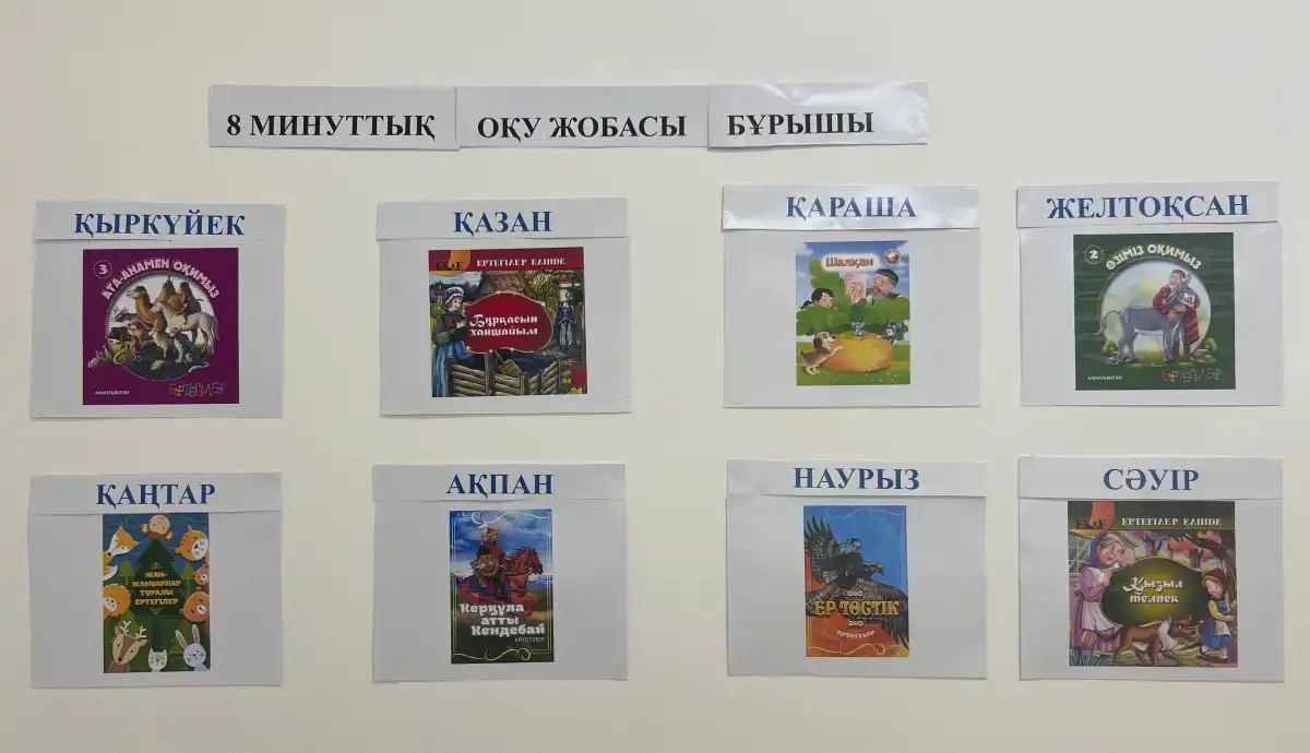 «Учащиеся приходят в школу в 07.45 ежедневно, а в 07.50 начинается 8-минутное чтение. Сказки для чтения для начинающих расположены в углу каждого класса. А старшеклассники приносят и читают свою ежедневную литературу. По окончании месяца по итогам ставят спектакли из сказок, рисуют рисунки, а старшеклассники выполняют и защищают проектную работу по прочитанным книгам. Все это организуется классными руководителями. Иногда, глядя на книги, которые читают дети, в школу приглашаются известные писатели, проводятся встречи», – рассказала о проекте директор школы-лицея №8 Гульнур Айтымова.