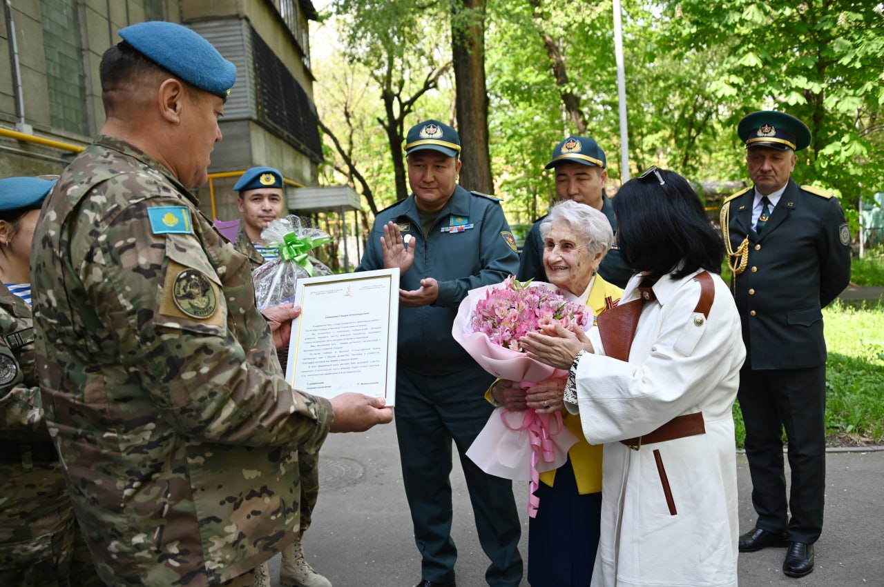 В Алматы военнослужащие Вооруженных сил поздравили ветерана войны Тамару Максимову