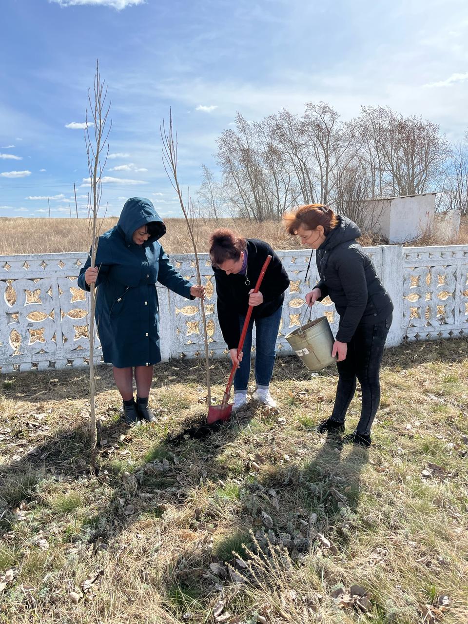 На территории Костряковского сельского округа, в селе Курское, местные жители провели посадку саженцев пирамидального тополя.