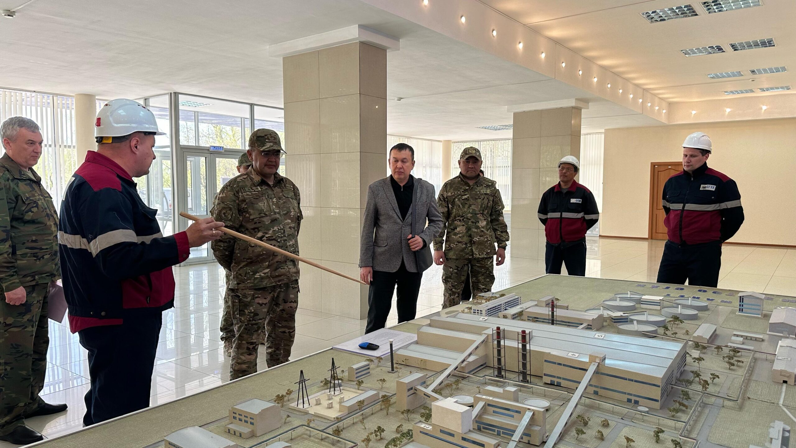 Также делегация из департамента побывала на одном из крупнейших предприятий не только Степногорска, но и региона в целом – Степногорсй горно-химический комбинат. Здесь также были обговорены вопросы безопасности производства, обеспечения охраны труда. Были осмотрены цеха и площадки комбината. Руководство рассказало о процессах производства, о принимаемых мерах по предотвращению форс-мажорных обстоятельств.