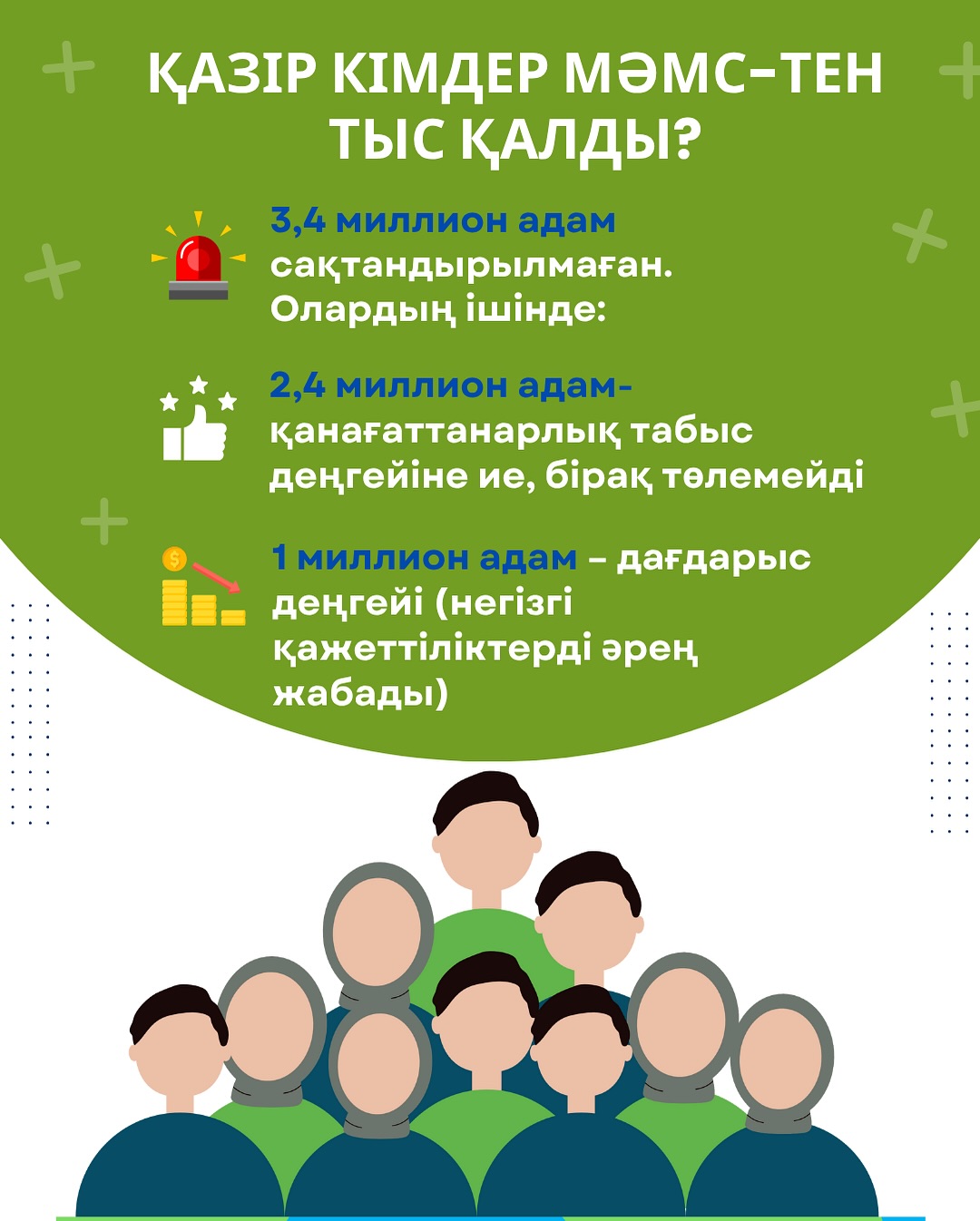 В рамках принятого закона в 2026 году системой ОСМС за счет средств местных бюджетов дополнительно будут охвачены около 1 миллиона человек с кризисным и экстренным уровнем благополучия (категории Д и Е).