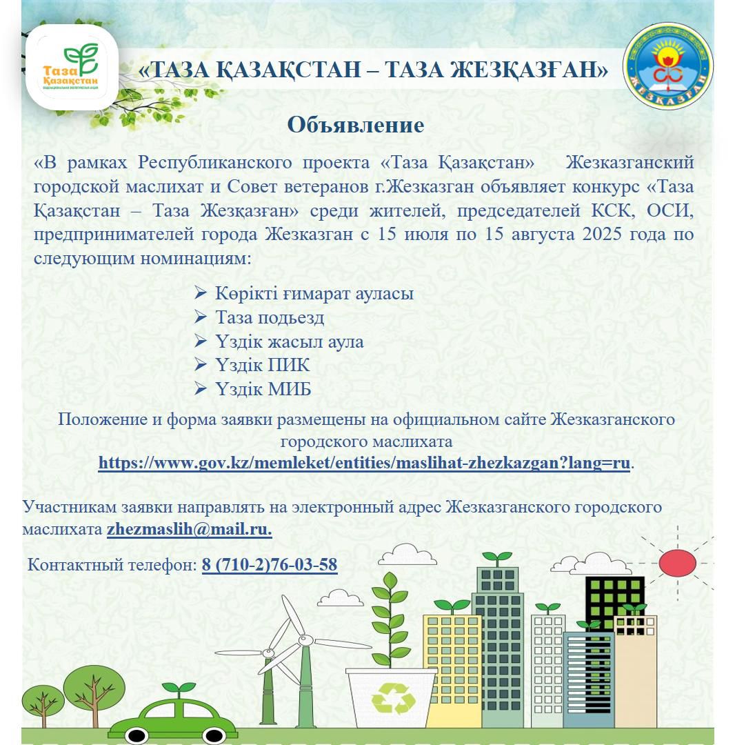 Объявление: Положение “о конкурсе Таза Қазақстан”