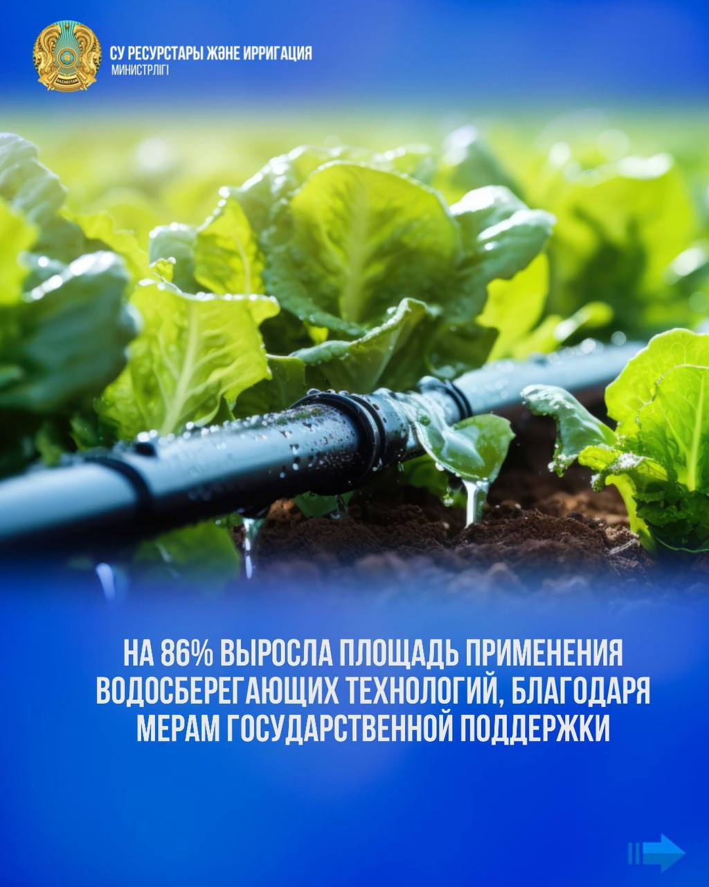 Принятые меры позволили увеличить площадь применения водосберегающих технологий на 86% – с 312,2 тыс. га в 2023 году до порядка 581 тыс. га в текущем году.