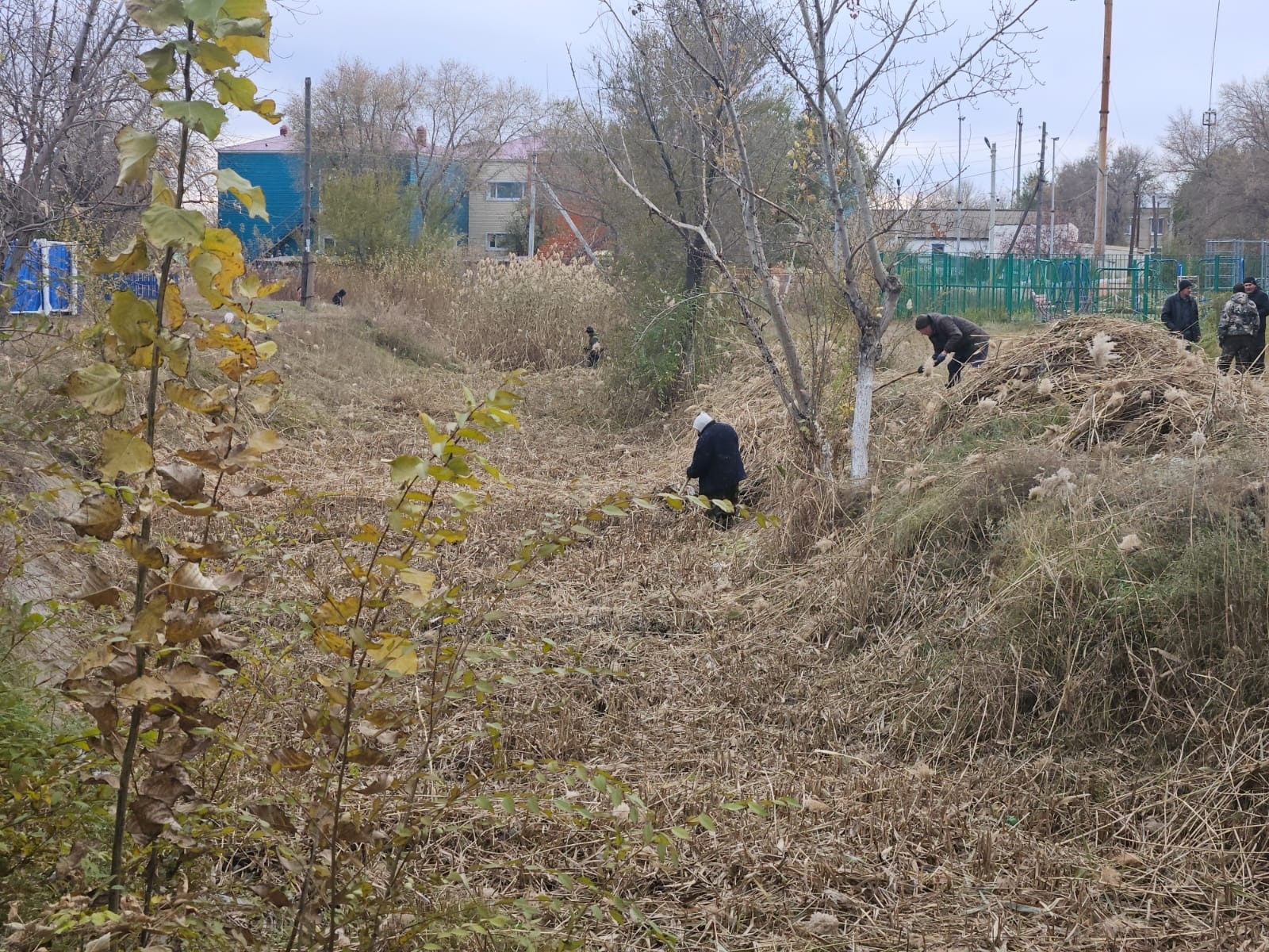 Согласно плану противопожарных и противопаводковых мероприятий в селе Аулиеколь проводится покос тростниковых и камышитовых зарослей вдоль лога по улице Байтурсынова.