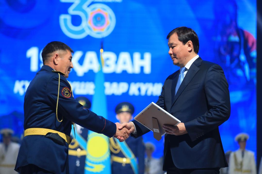 В ходе торжественной церемонии были награждены лучшие сотрудники службы по чрезвычайным ситуациям. Приказом министра ЧС Республики Казахстан нескольким специалистам присвоены специальные звания и вручены нагрудные знаки. Так, оперативному дежурному пожарной службы Нуржану Жарлагановуприсвоено звание «полковник гражданской защиты», начальнику караула 4-го отделения БалтабекуКуанышбаю – звание «капитан гражданской защиты», а старшему спасателю оперативно-спасательного отряда Есентурару Сергазыулы вручен нагрудный знак «Құтқарушы».