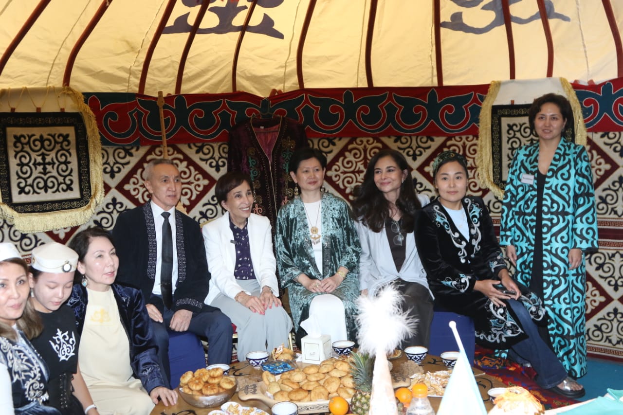 У стенда Казахстана, стилизованного под традиционную казахскую юрту, принцессу Басму бинт Талал приветствовали Посол Талгат Шалданбай и сотрудники Посольства. Принцесса Басма осмотрела экспозицию павильона, высоко оценила ее содержательность и художественное оформление.
