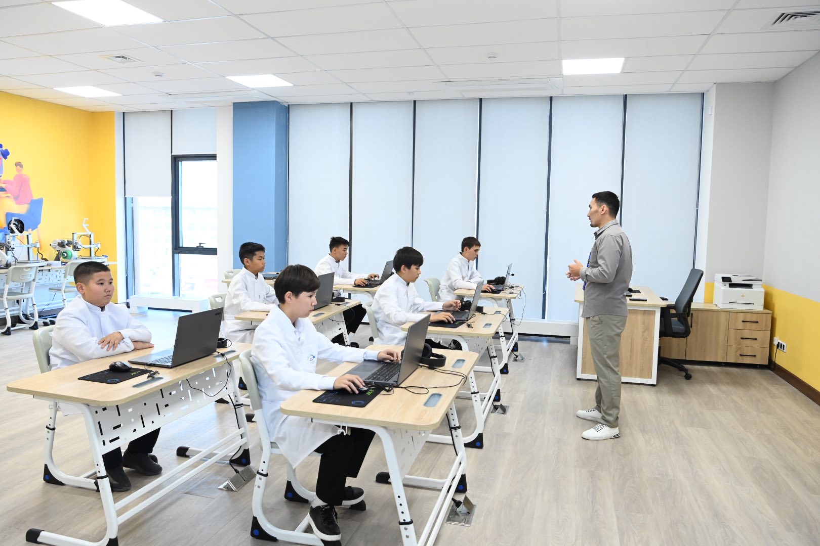 Первым пунктом посещения стала творческо-инновационная академия «Сыр жұлдыздары», открытая в мае. Центр рассчитан на одновременное обучение 500 детей и подростков, а в течение дня может принять до 3 тысяч человек.