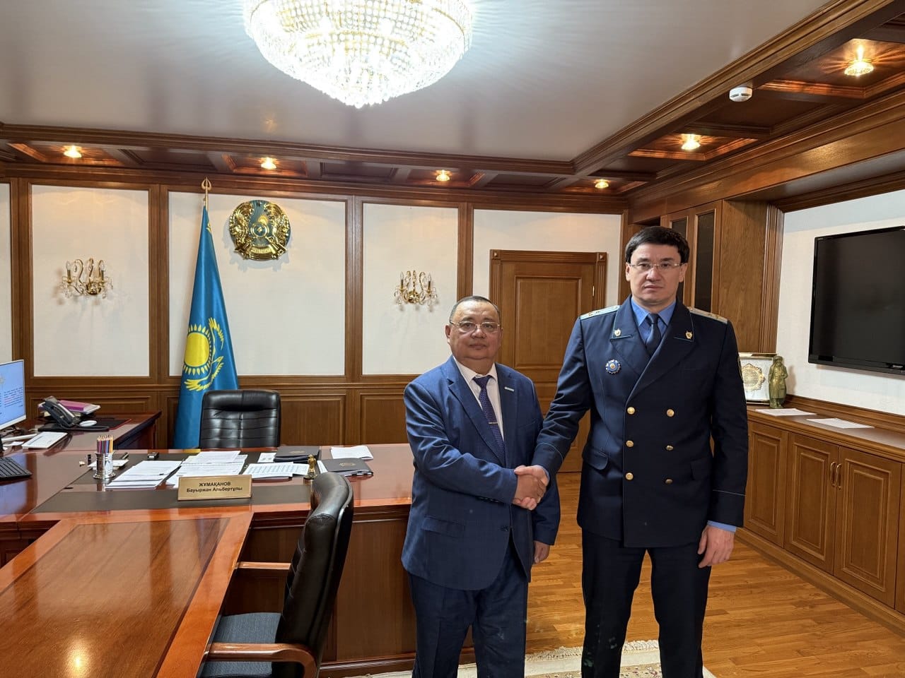 Сегодня состоялась первая официальная встреча вновь назначенного прокурора области Жетісу Жумаканова Бауыржана Альбертовича с Представителем Уполномоченного по правам человека в Республике Казахстан по области Жетісу Карымсаковым К.Б. В ходе этого, стороны подчеркнули первостепенное отношение государства к вопросам совершенствования механизмов защиты прав человека, всестороннего соблюдения и исполнения Основного Закона Страны, – Конституции РК. Были отмечены ключевые новеллы Конституционной реформы 2022 года, – базирующиеся на принципах справедливости и обеспечения расширения свобод граждан с учетом интересов всего общества. Договоренность о взаимодействиях по вышеуказанным вопросам будет осуществляться в тесном контакте в проводимых мероприятиях с принятием исчерпывающих мер.