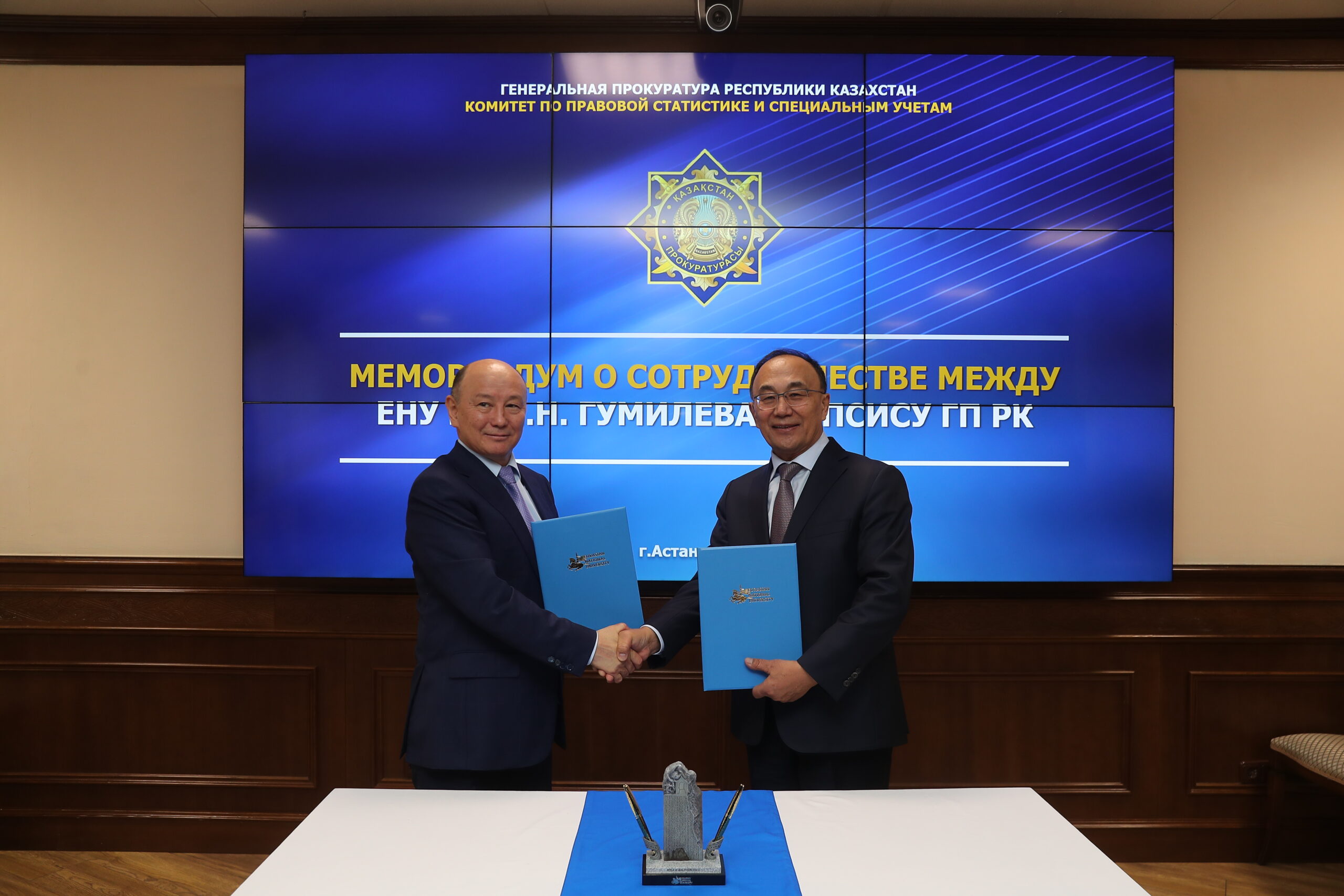22 октября 2025 года заключён Меморандум о сотрудничестве между Евразийским национальным университетом имени Л.Н. Гумилева и Комитетом по правовой статистике и специальным учетам Генеральной прокуратуры.