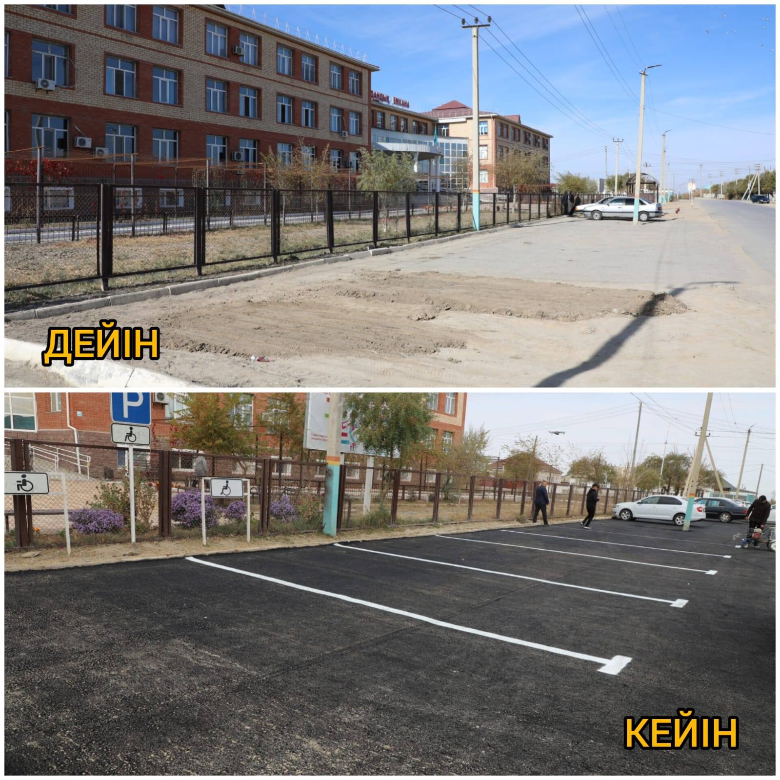 По поручению акима, в короткий срок автостоянка районной поликлиники была полностью заасфальтирована и размечена для удобства движения транспорта.