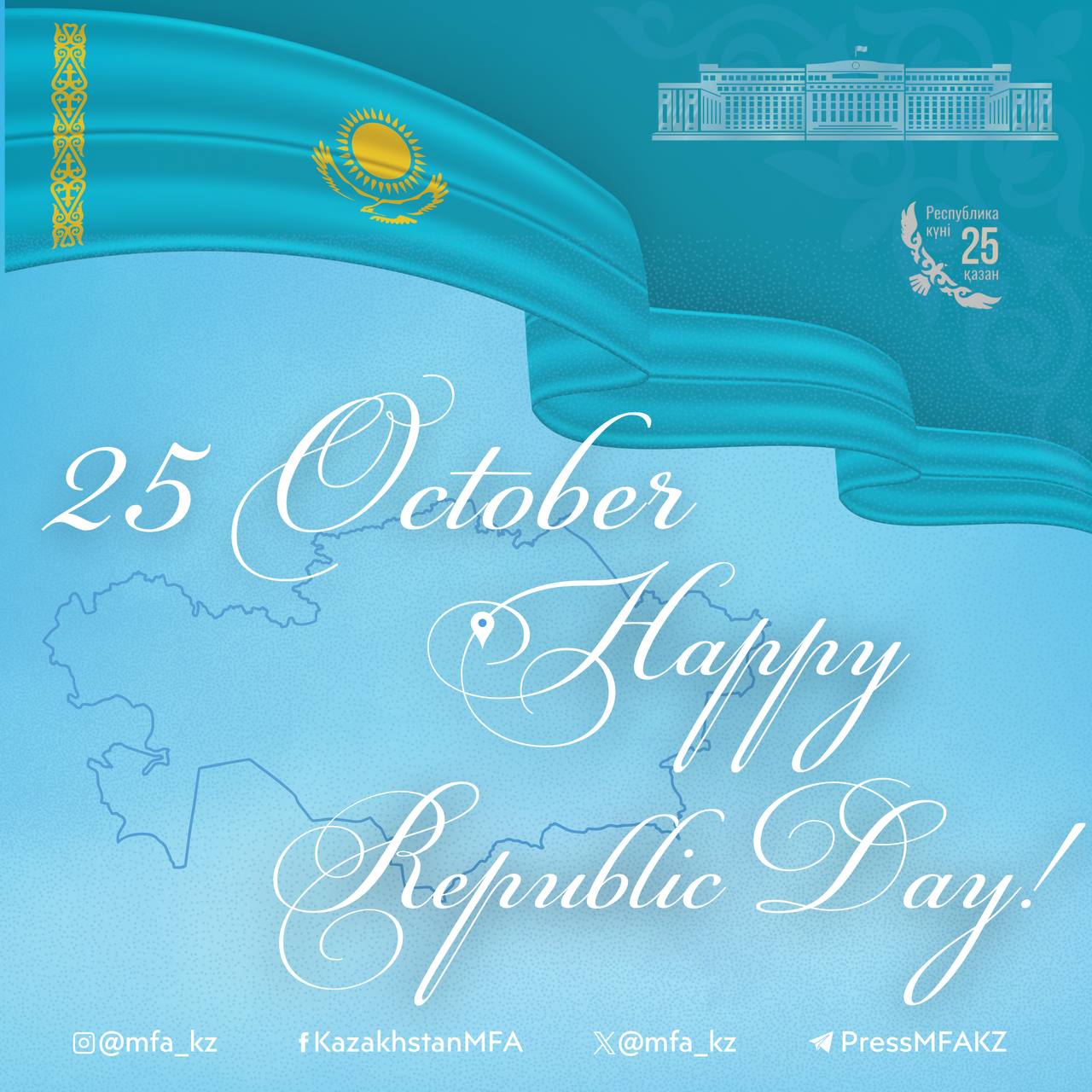 Пусть всегда высоко реет небесно-голубое знамя Казахстана!