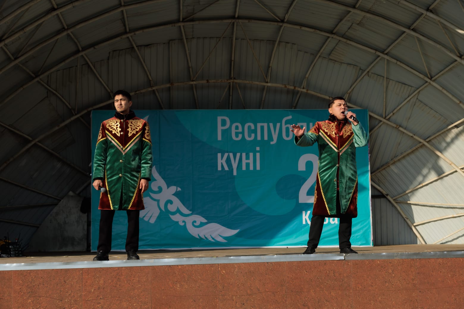 Во время поднятия флага был исполнен государственный гимн Казахстана.