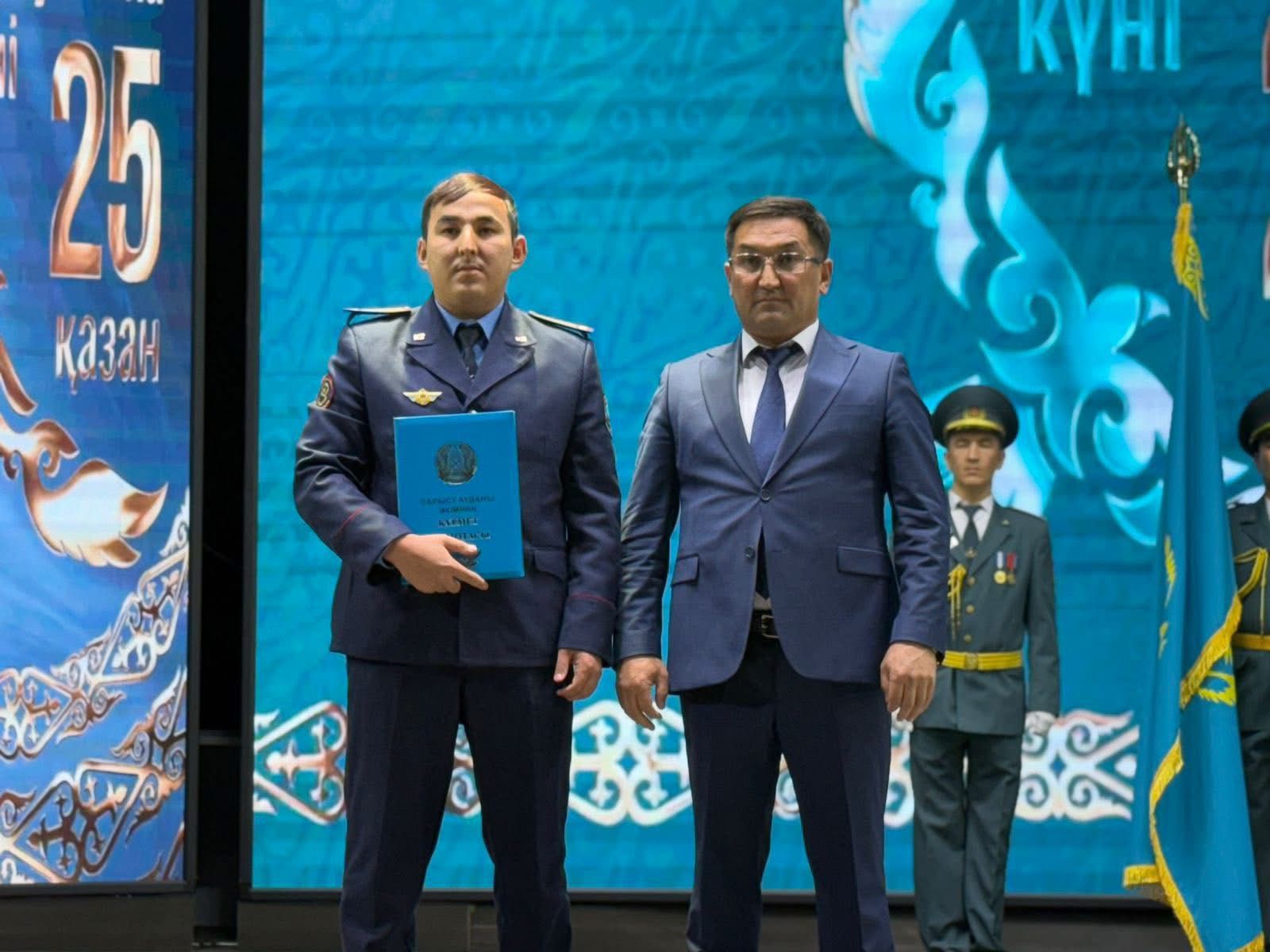 🔰В честь Дня Республики, 25 октября, в районном Доме культуры состоялось торжественное собрание. Мероприятие началось с исполнения Государственного Гимна Республики Казахстан. Аким района Сакен Мамытов поздравил собравшихся с этим священным праздником и выразил пожелание, чтобы наша Независимость — мечта Вечной страны — оставалась прочной. За весомый вклад в экономическое развитие района ряд специалистов и ветеранов были награждены нагрудным знаком «За заслуги перед Жамбылской областью», Почетными грамотами и Благодарственными письмами акима Жамбылской области и акима Сарысуского района, а также нагрудным знаком «За заслуги перед районом».