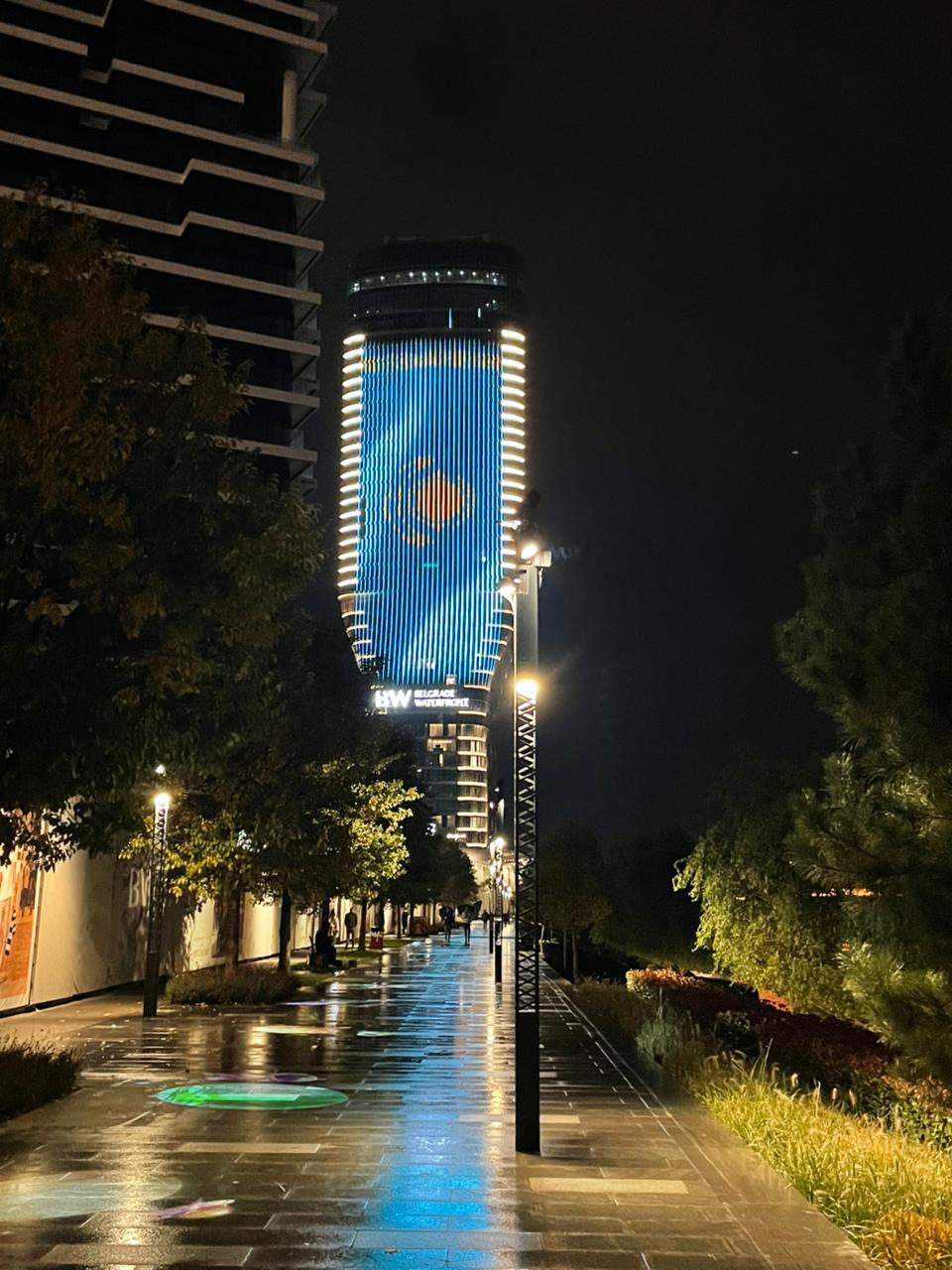 Белград, 25 октября 2025 года – По случаю Национального праздника Казахстана – Дня Республики – на самом высоком здании столицы Сербии, Белградской башне, ставшей символом города и новым архитектурным ориентиром был спроектирован казахстанский флаг.
