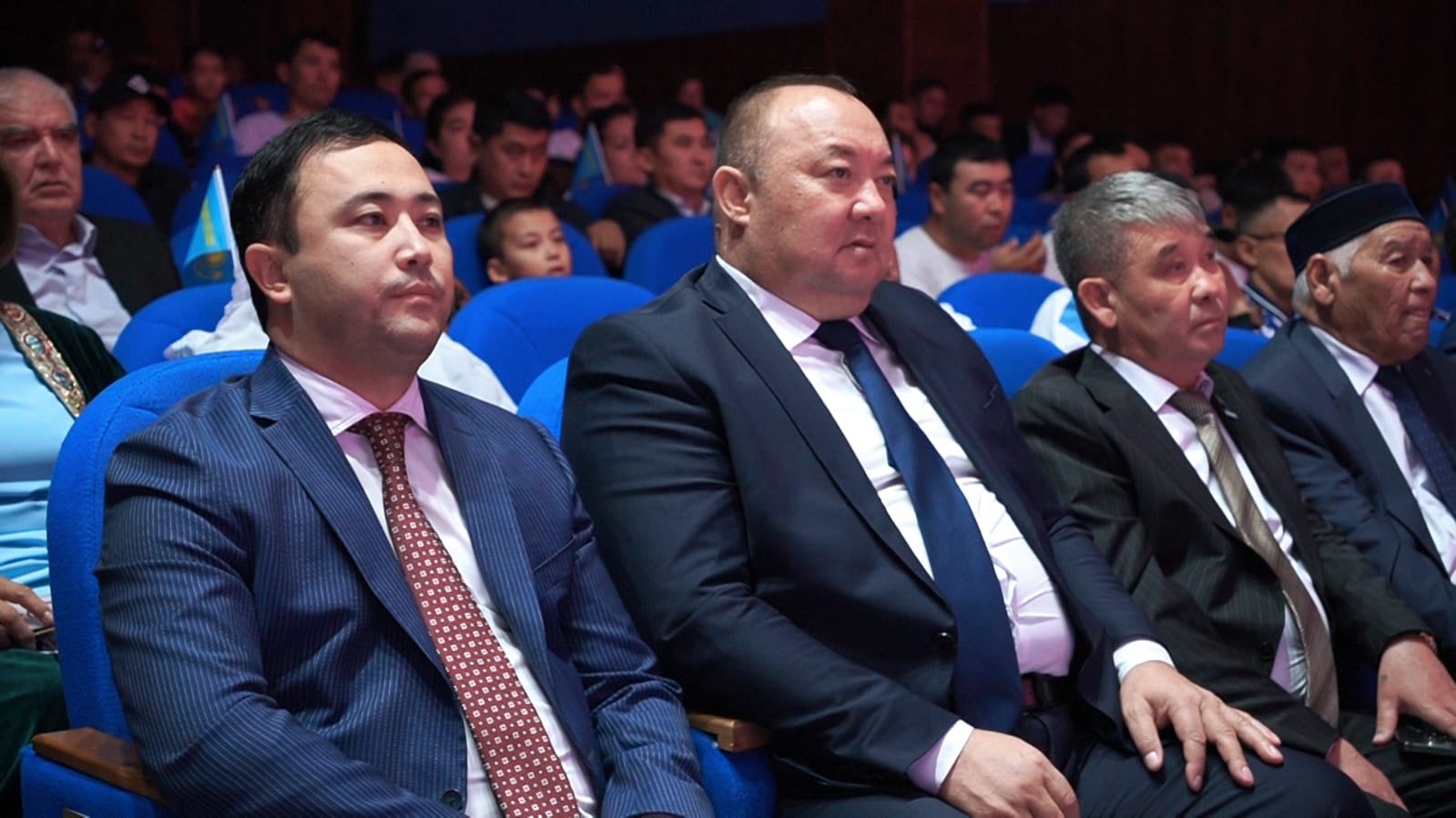 На торжественном собрании аким Келесского района Жанибек Агыбаев поздравил общественность района со знаменательным праздником и отметил историческое и политическое значение Дня Республики.