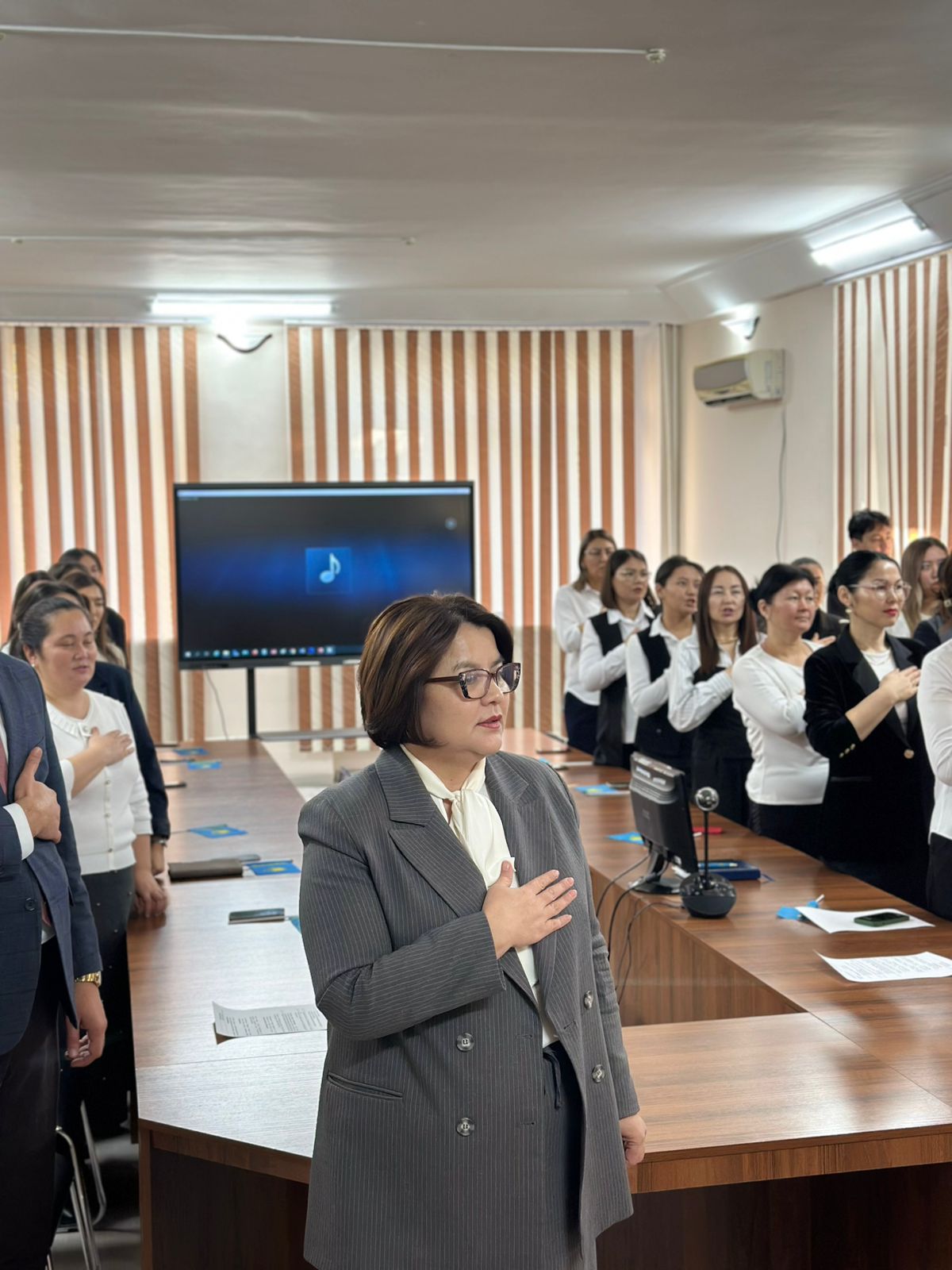 В ходе мероприятия сначала был исполнен гимн и руководитель Департамента Динара Олжабаевна от всей души поздравила специалистов с главным праздником страны и пожелала всем благополучия, и новых достижений.