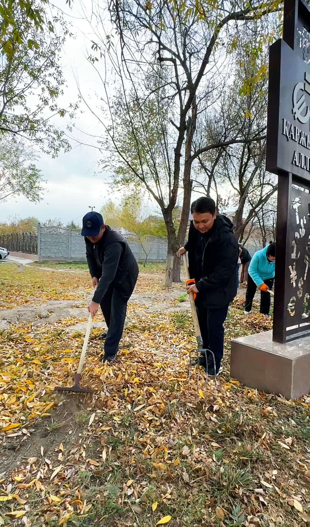 Сотрудники акимата района и коллективы территориальных округов приняли активное участие, убрав Аллею финансистов от опавших осенних листьев 🍂